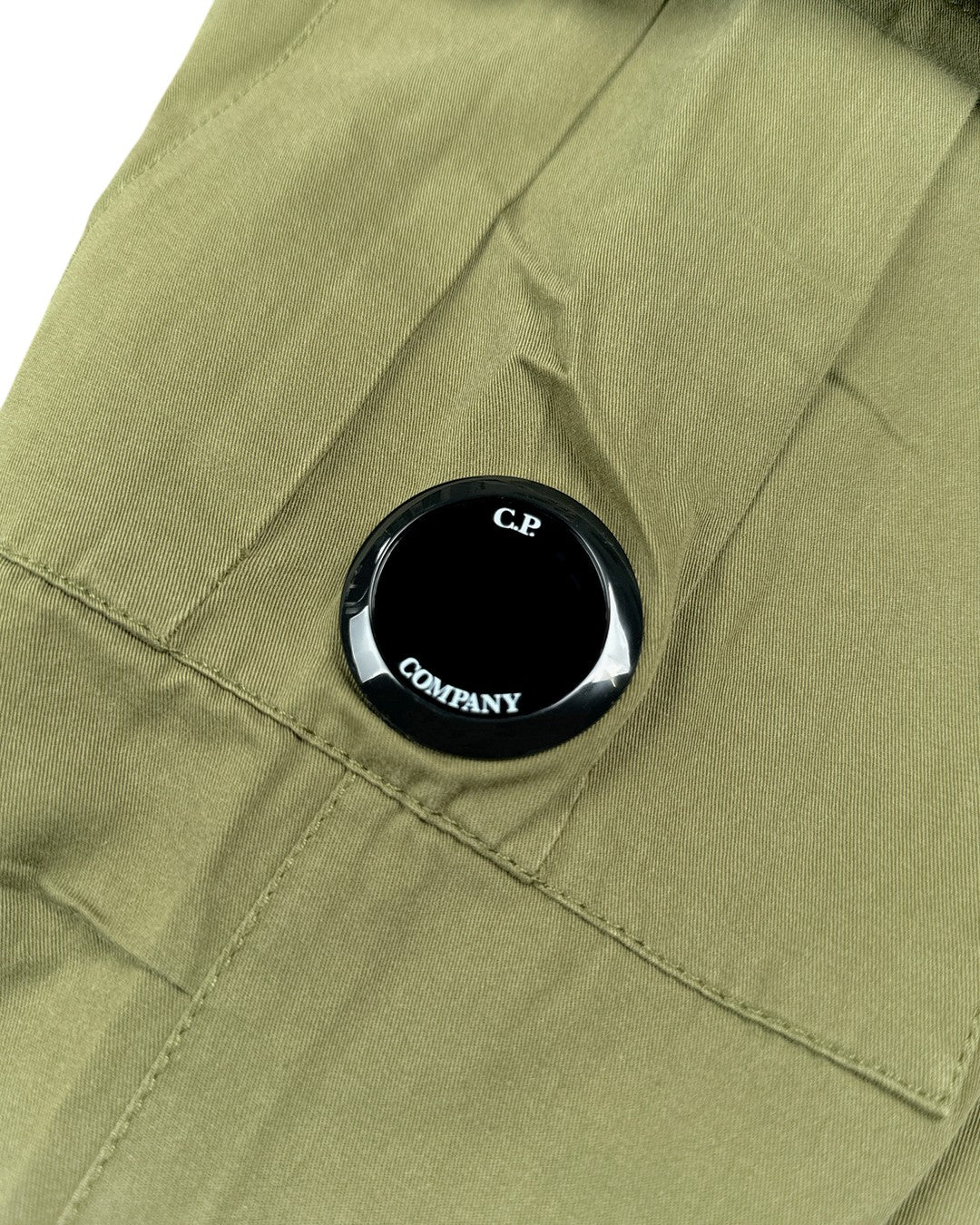 Функціональні карго-штани створені у зручному крої з поясними петлями, застібкою на блискавку та гудзик, а також зі скошеними кишенями для рук. Завершуються двома задніми кишенями, двома карго-кишенями з клапанами і деталлю у вигляді лінзи від C.P. Company. Виготовлені з легкої пружної матерії Stretch Sateen - матової бавовняної тканини з еластичністю, що забезпечує гнучке і міцне облягання. Фарбовані після пошиття для збільшення глибини і насиченості кольору.
