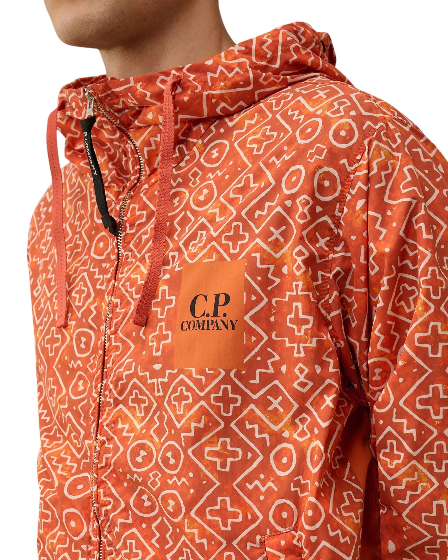 Куртка з принтом у стилі інків, з регульованим капюшоном Goggle та застібкою на блискавку. На куртці також є надрукований логотип, дві бічні кишені для рук та еластичні манжети. Виготовлена з Flatt Nylon, плаского нейлону, що витягується або шліфується. Отримана тканина м'якша і має матове покриття. Виріб пофарбовано для збільшення глибини та інтенсивності кольору по всій тканині.