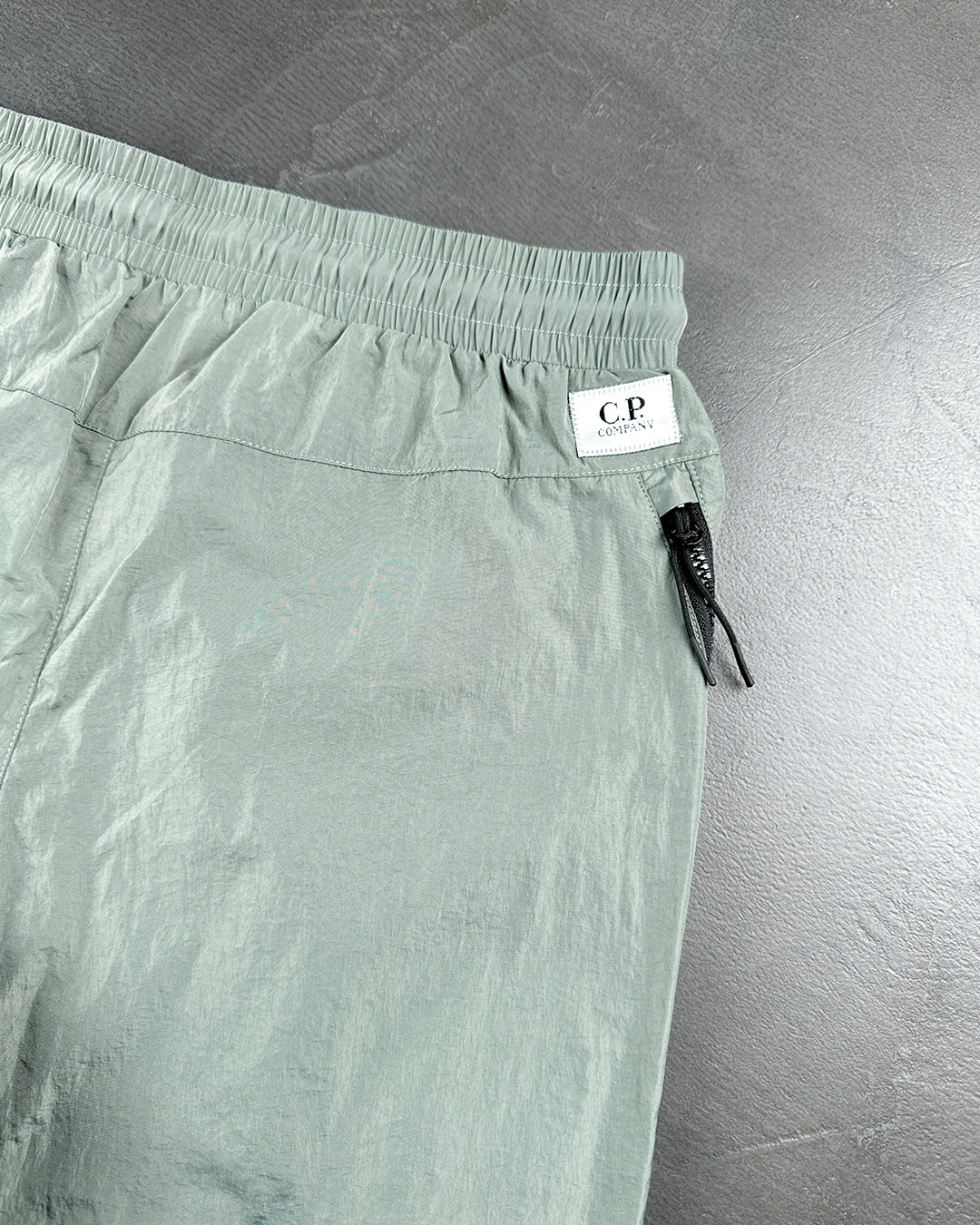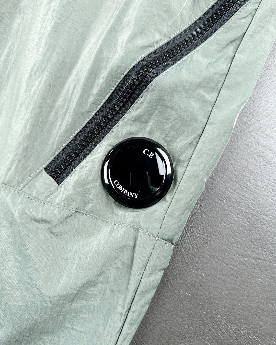 Штани від C.P. Company з нейлонової тканини Chrome, яка добре пропускає повітря та швидко сохне. Еластичні манжети та пояс, бічні кишені та фірмова лінза.