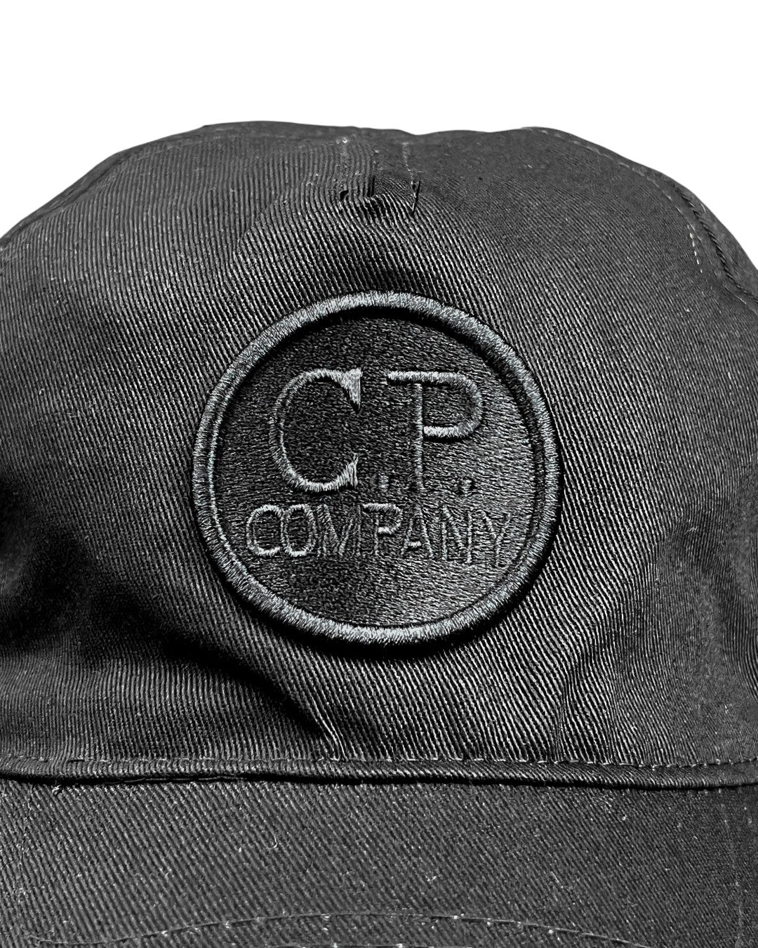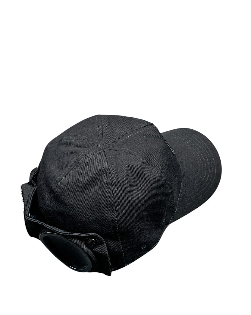 Бейсболка з шістьма панелями від C.P. Company оформлена в чорному кольорі. Спереду представлена аплікація з логотипом, а ззаду ця етикетка з культовими лінзами для окулярів.