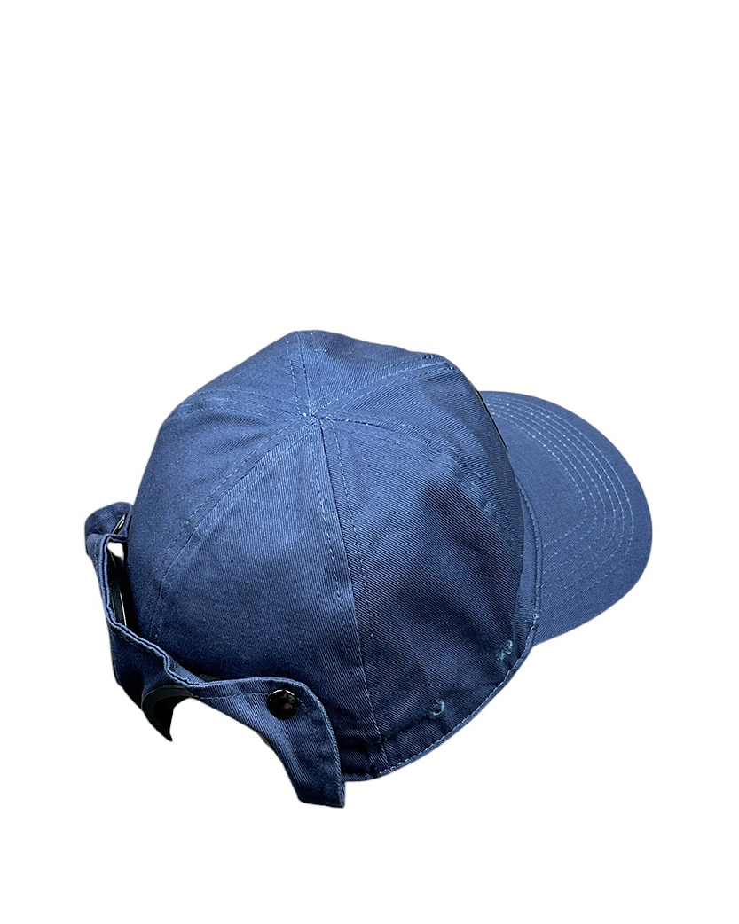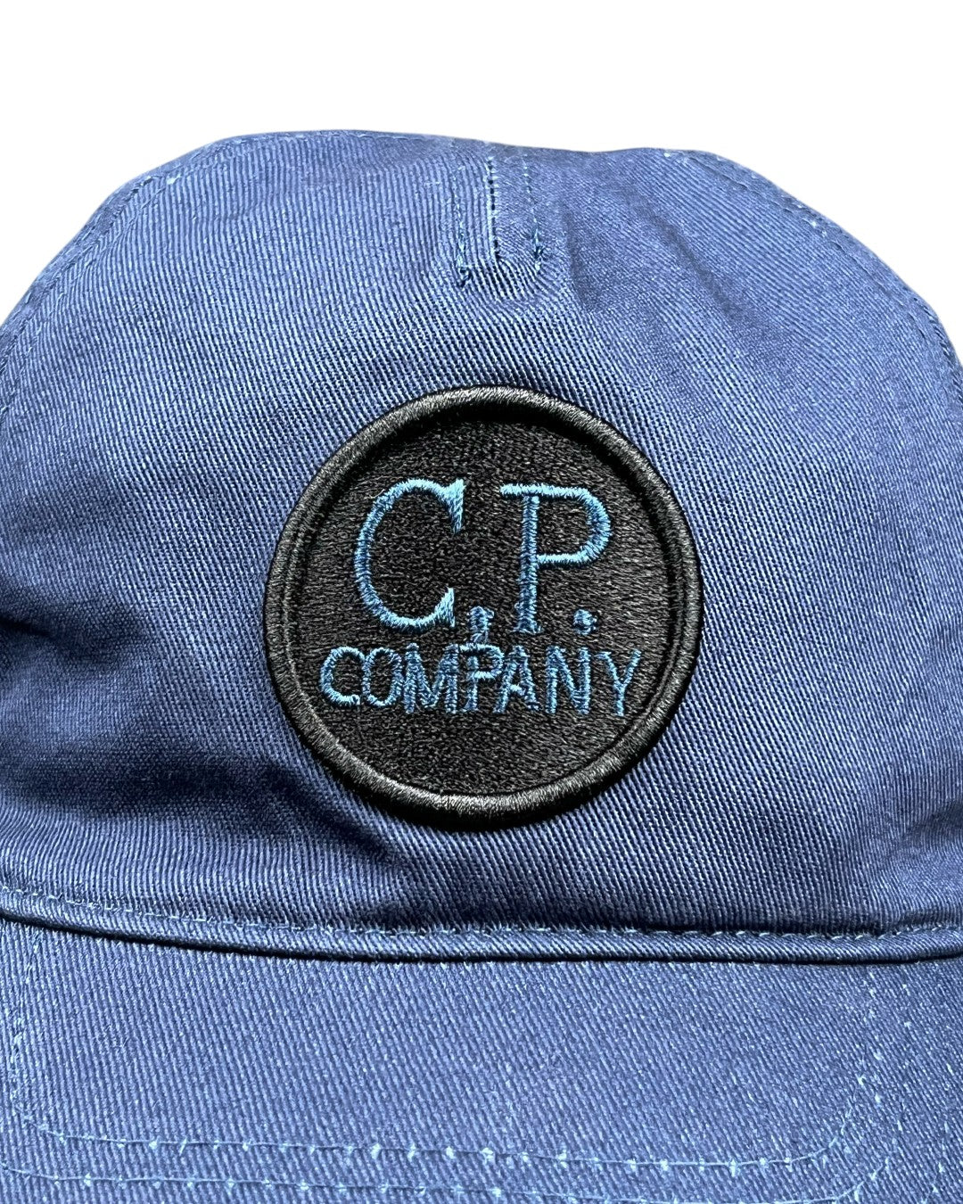 Бейсболка з шістьма панелями від C.P. Company оформлена в синьому кольорі. Спереду представлена аплікація з логотипом, а ззаду ця етикетка з культовими лінзами для окулярів.