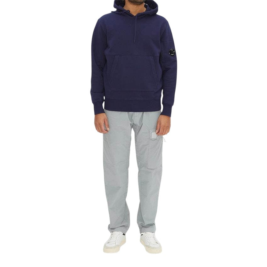 Базове худі з капюшоном зі 100% бавовни. Капюшон із куліскою. Довгі рукава з манжетами та фірмовим значком об'єктива на рукаві. Спереду кишеня-кенгуру. Прямий поділ.