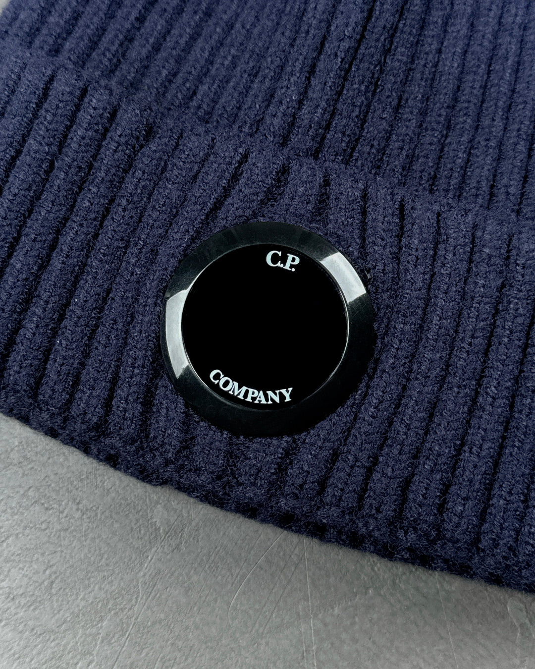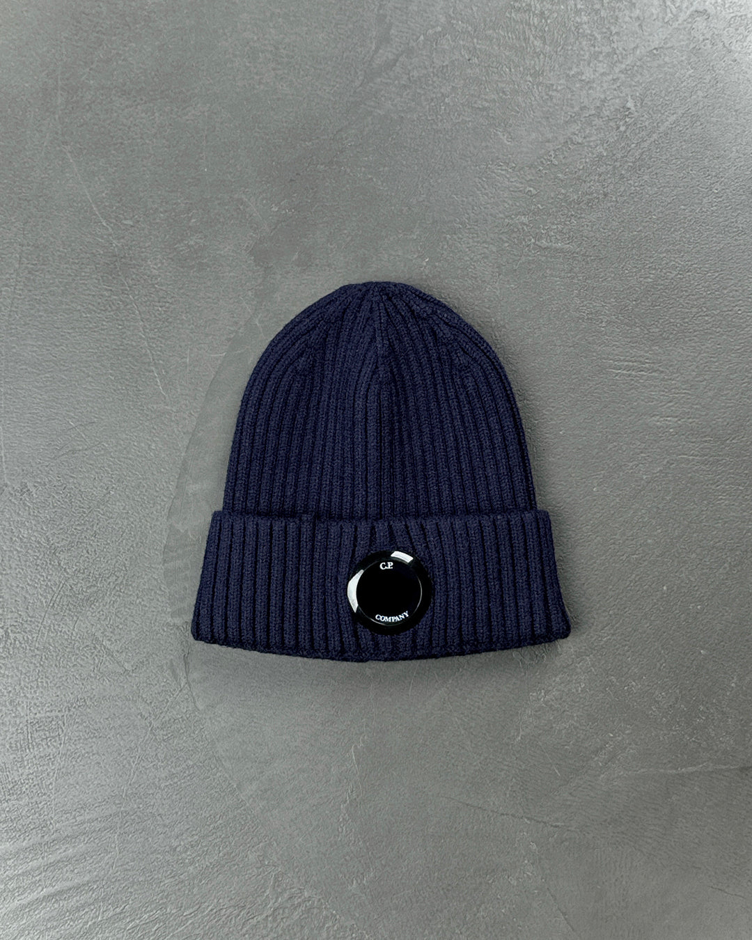 Шапка з вовни джилонг у резинку. Спереду: фірмова лінза C.P. Company.