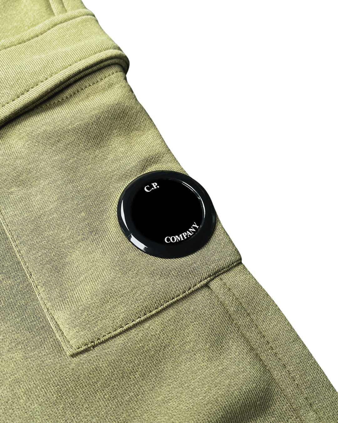 Шорти довжиною до коліна, прямого крою, з косими кишенями для рук, еластичним поясом на шнурку та допоміжною кишенею з фірмовим логотипом C.P. Company Lens на штанині. Виготовлені з легкого бавовняного флісу. Пофарбована тканина для збільшення глибини та інтенсивності кольору.