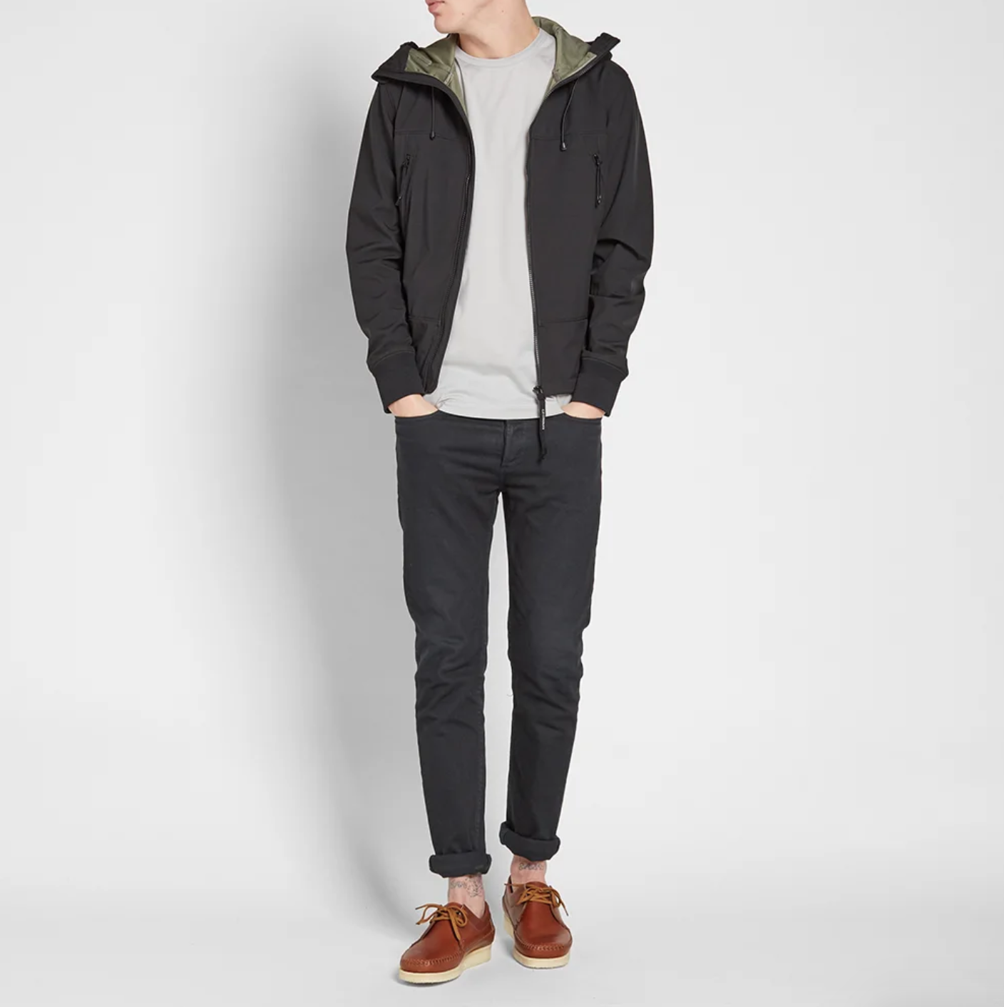 Куртка з софтшелу має гнучкий, але захисний крій, застібається на блискавку, має надійні кишені та капюшон. Куртка виготовлена з C.P. Shell-R, тканини софтшелл, виготовленої з переробленої поліефірної пряжі, де стійка до погодних умов мембрана скріплена з легкою сіткою, утворюючи зручний міжсезонний шар без шкоди для захисних властивостей одягу.