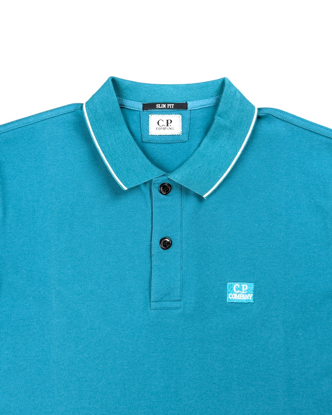 C.P. Company Stretch Piquet Regular Striped Collar Polo Shirt Peacock Green