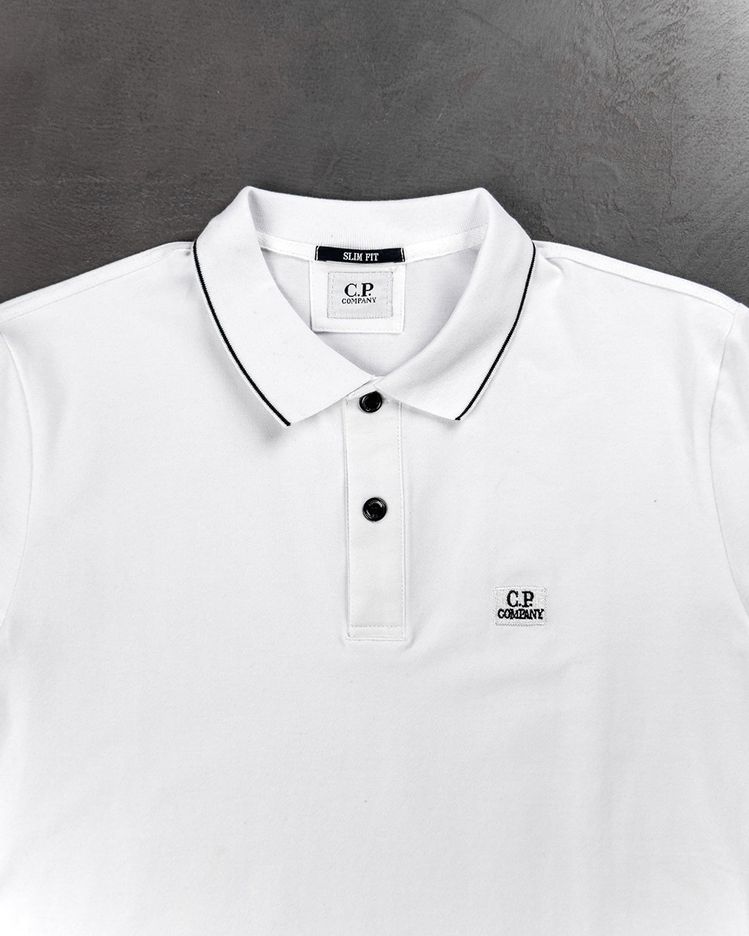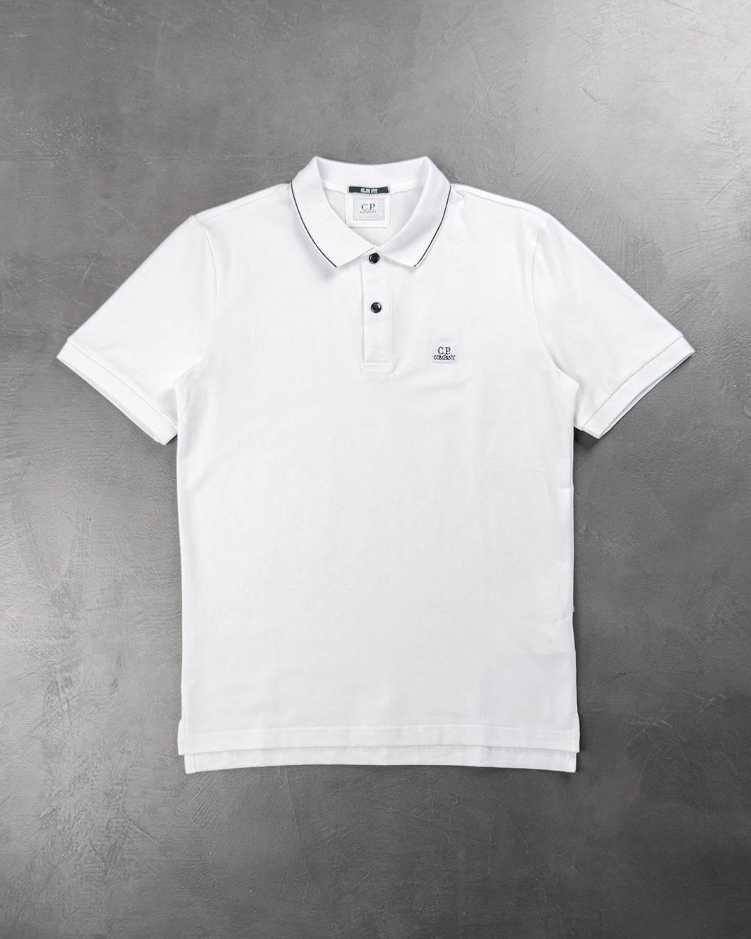C.P. Company Stretch Piquet Regular Striped Collar Polo Shirt White