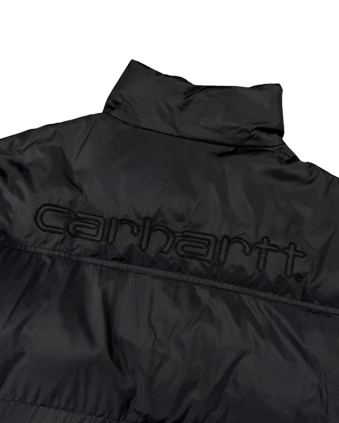 Куртка виготовлена з водовідштовхувальної поліестерової тафти, наповнена пухом для забезпечення тепла і має підкладку з нейлонової тафти. М'який комір-стійка збереже вашу шию в теплі, а нижній край можна регулювати. Зручні дві кишені для рук на кнопках. Завершується ця куртка чорним логотипом у вигляді напису на грудях та спині.