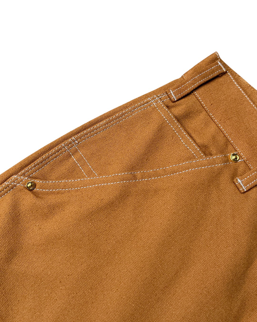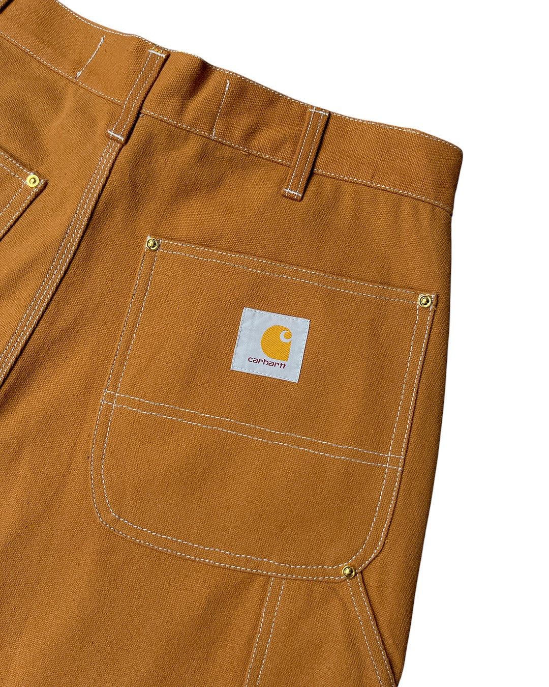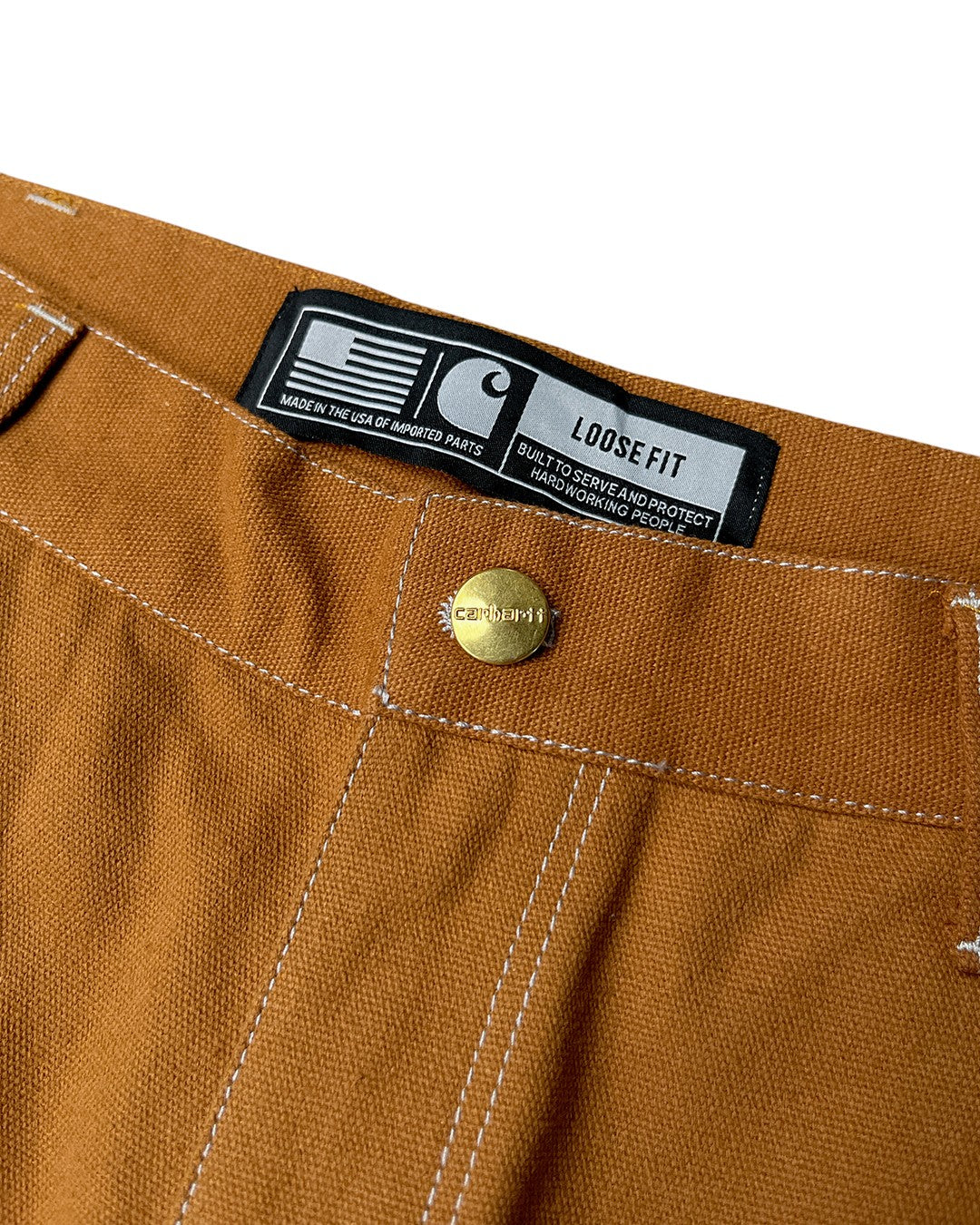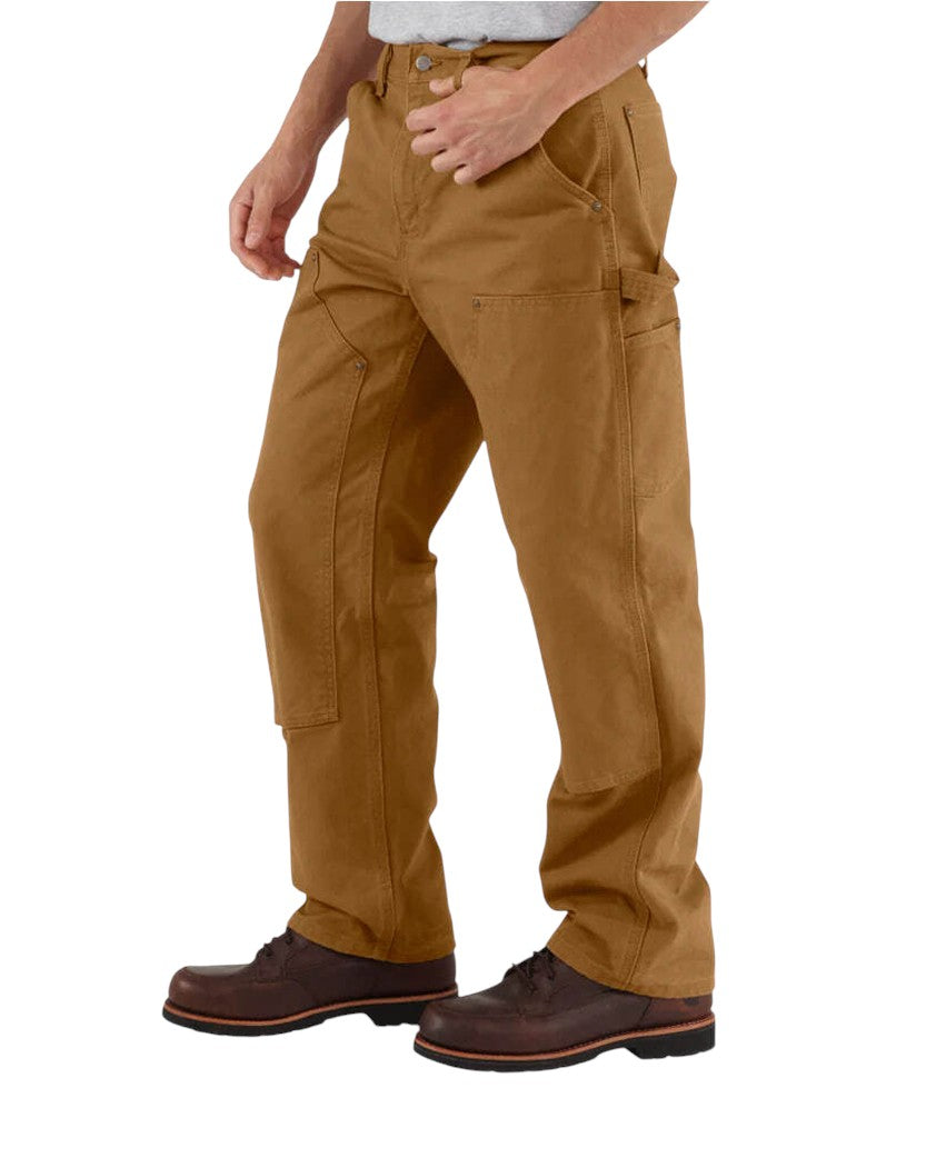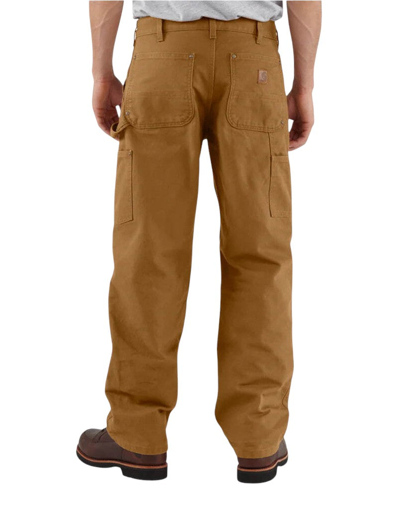 Штани B136 від Carhartt з подвійною передньою частиною сидять на талії та скроєні з повною посадкою. Мають кілька кишень для інструментів та інших дрібниць, а також петлю для молотка. Отвори для ніг мають розмір 19 дюймів, щоб можна було вдягнути робочі черевики.