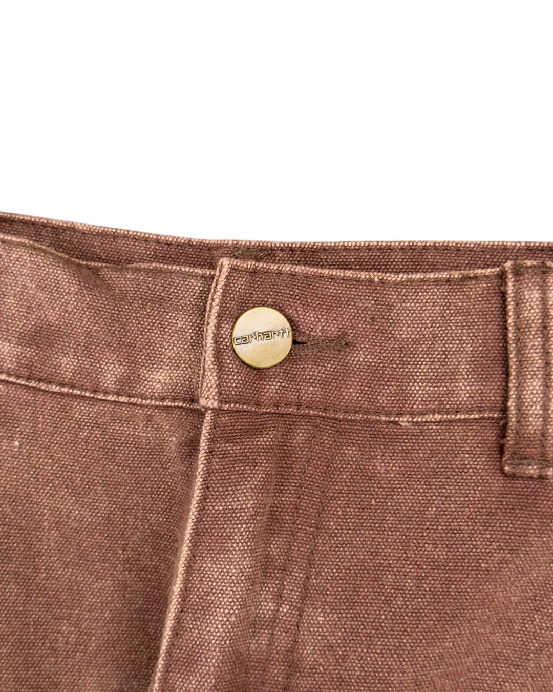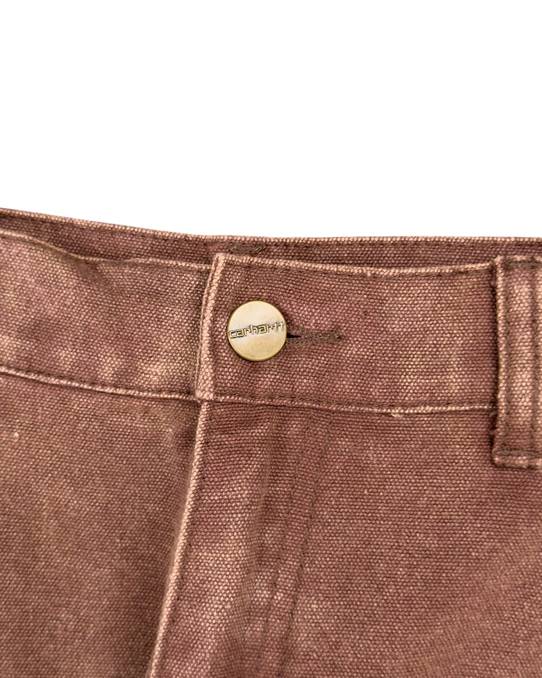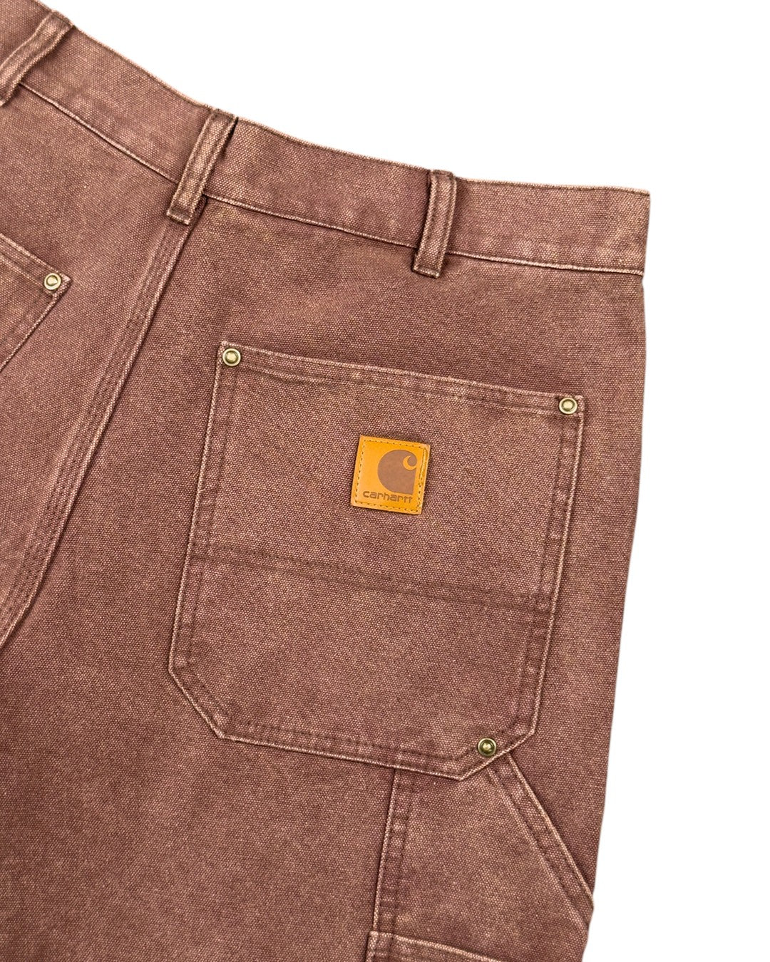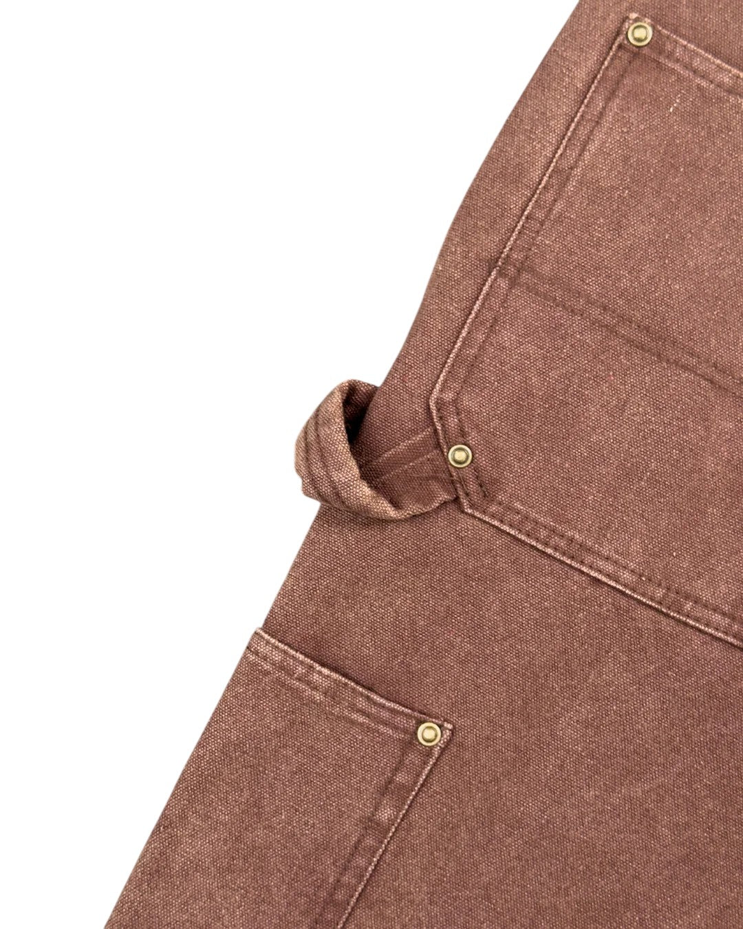 Штани з подвійними колінами натхненні класичними силуетами робочих штанів і виготовлені з міцної 12-унц. тканини Dearborn Canvas, яка з часом повільно розм'якшується під час носіння. Цей виріб має регулярну талію та розслаблений прямий крій, з двошаровими наколінниками для додаткового посилення. Прострочка у важливих місцях навантажень робить штани більш міцними. Заклепки, кишені для інструментів та петля для молотка - ще один натяк на утилітарні впливи стилю.