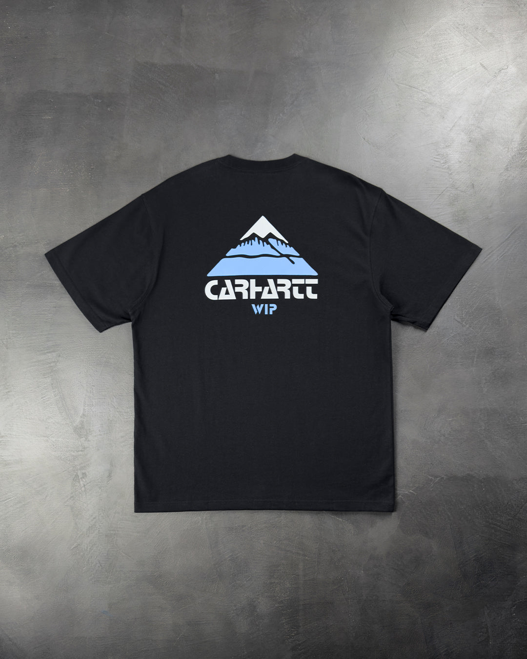 Новинка від Carhartt WIP - футболка Mountain. Виготовлена зі 100% бавовни та скроєна з ребристим трикотажним коміром, що підтримує комфортний силует. Ця графічна футболка має принт Mountain, надрукований на спині в холодних відтінках синього та сірого. На грудях надруковано логотип Carhartt WIP