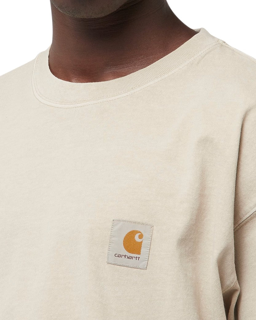 Футболка Carhartt WIP Nelson T-shirt у відтінку беж — це поєднання простоти, якості та характерного стилю бренду. Виготовлена з щільної бавовни з ефектом легкого зістарення, вона має розслаблений крій і м’яку на дотик текстуру. Непомітний логотип на грудях підкреслює автентичність речі без зайвої демонстративності. Ідеальний варіант для щоденного носіння з акцентом на комфорт і стиль.