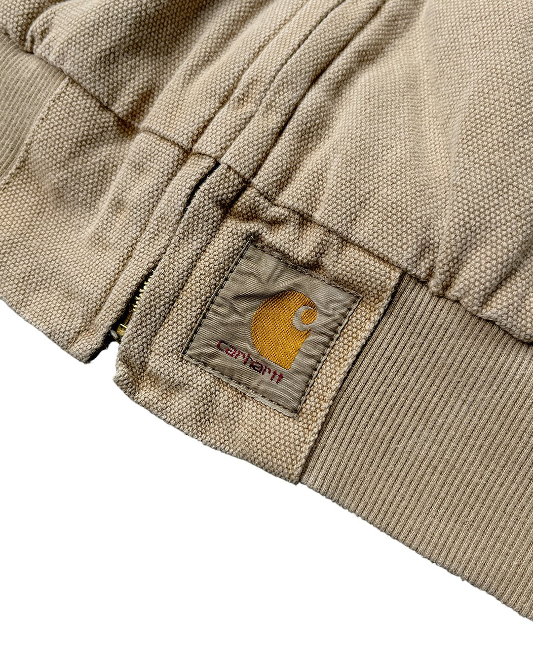 Куртка-бомбер Santa Fe від Carhartt виготовлена з важкого еластичного полотна з високим вмістом бавовни. Основна частина підшита бавовняним попліном з нейлоновою підкладкою в рукавах. Ребристі манжети та пояс забезпечують додаткове тепло. Дизайн завершується фірмовим брендуванням Carhartt.