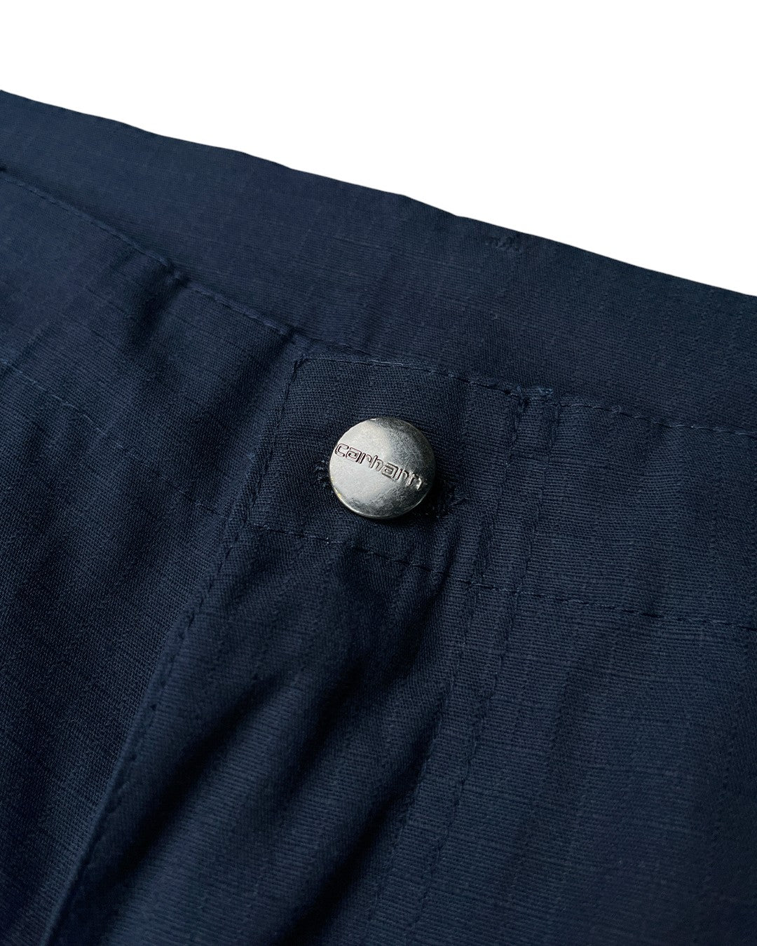 Carhartt WIP відомий своїм утилітарним підходом до створення стилю - і ці штани-карго демонструють саме це. Вони пошиті з легкого, але міцного бавовняного рипстопу та оснащені класичною застібкою-блискавкою та ґудзиками. Шість кишень та посилені наколінники завершують естетику робочого одягу, а знакова золота ткана нашивка бренду гордо розміщена на правій нозі.
