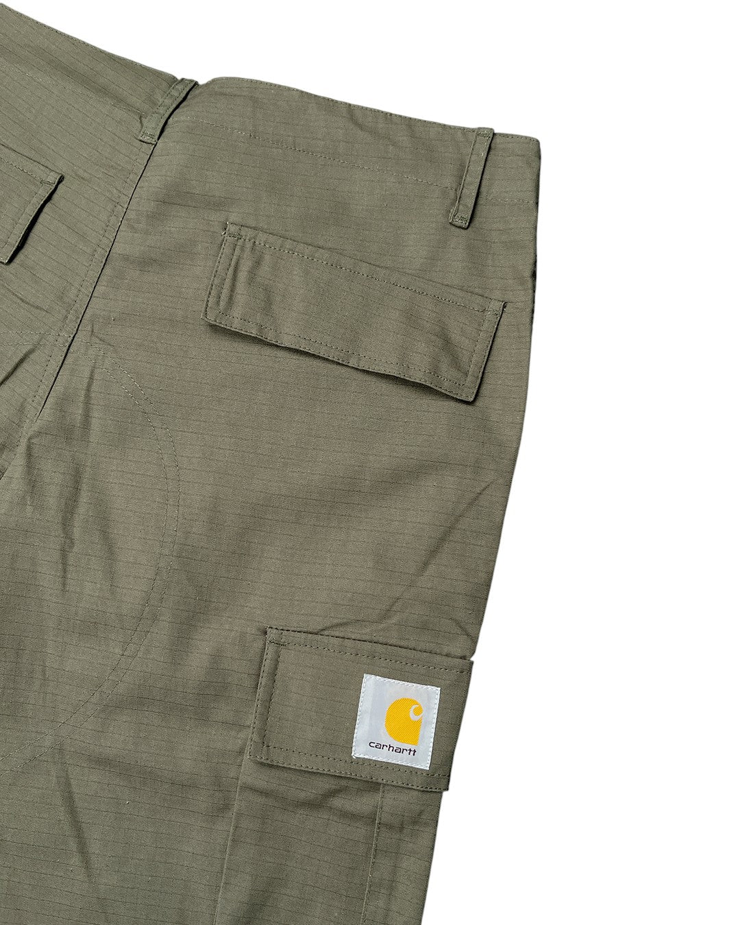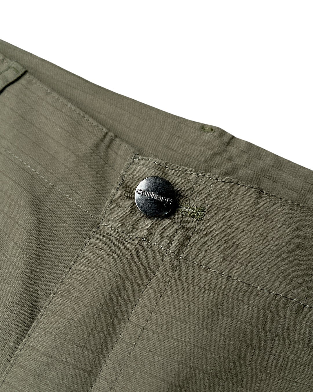 Carhartt WIP відомий своїм утилітарним підходом до створення стилю - і ці штани-карго демонструють саме це. Вони пошиті з легкого, але міцного бавовняного рипстопу та оснащені класичною застібкою-блискавкою та ґудзиками. Шість кишень та посилені наколінники завершують естетику робочого одягу, а знакова золота ткана нашивка бренду гордо розміщена на правій нозі.