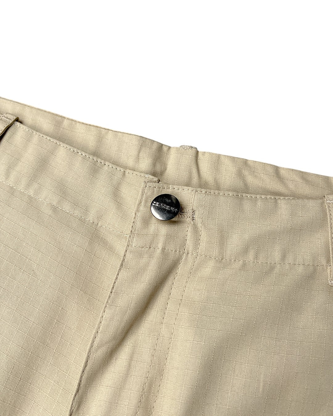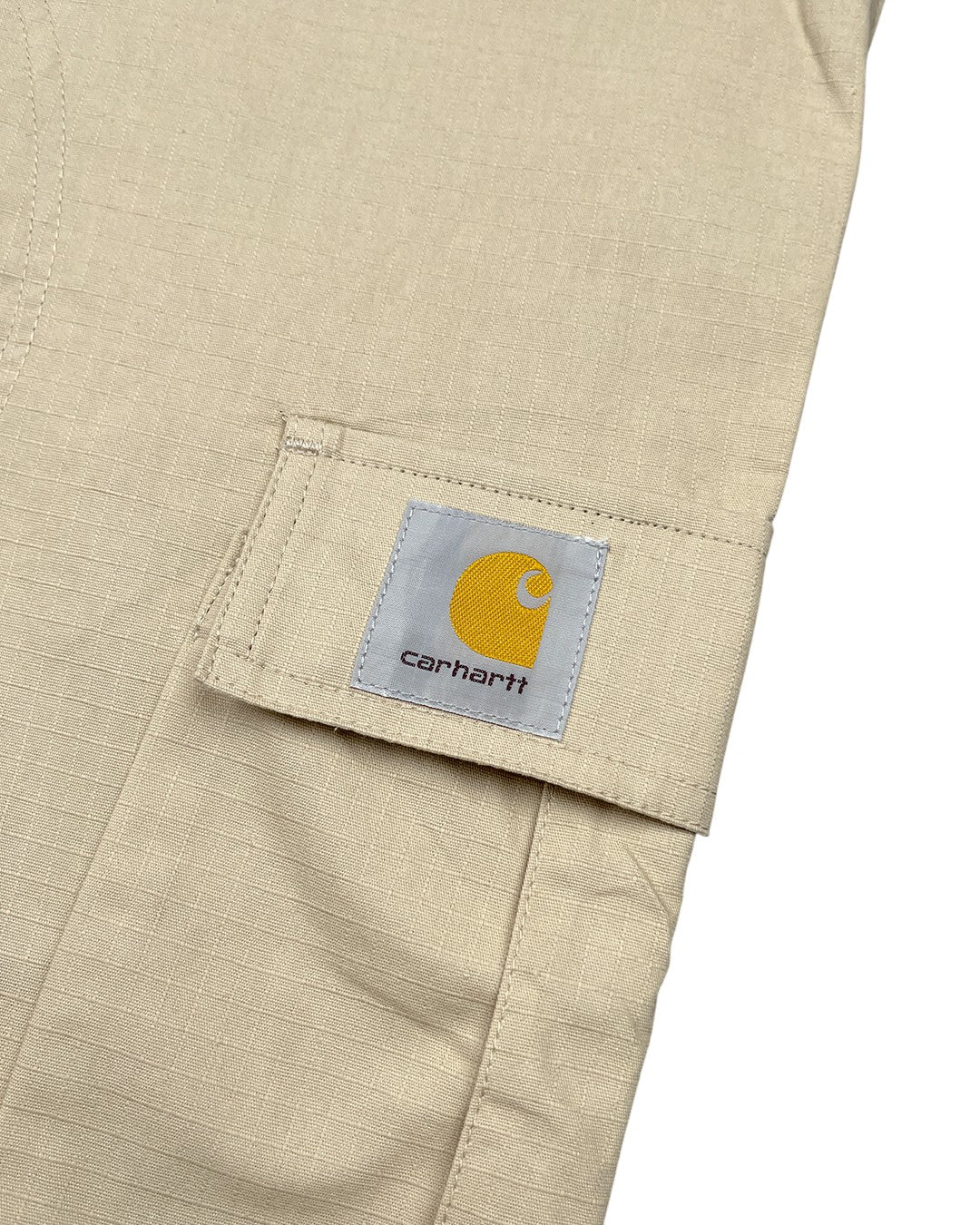 Carhartt WIP відомий своїм утилітарним підходом до створення стилю - і ці штани-карго демонструють саме це. Вони пошиті з легкого, але міцного бавовняного рипстопу та оснащені класичною застібкою-блискавкою та ґудзиками. Шість кишень та посилені наколінники завершують естетику робочого одягу, а знакова золота ткана нашивка бренду гордо розміщена на правій нозі.