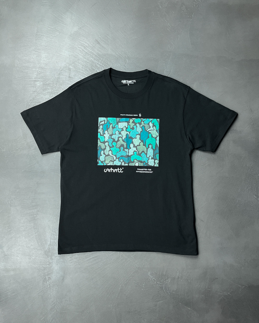 Футболка з короткими рукавами Unity T-Shirt від CARHARTT WIP чорного кольору, з органічної бавовни та має круглий виріз горловини, вільний крій і прямий поділ. На грудях зображений графічний принт. Цей виріб виготовлено щонайменше на 50% з органічних матеріалів.