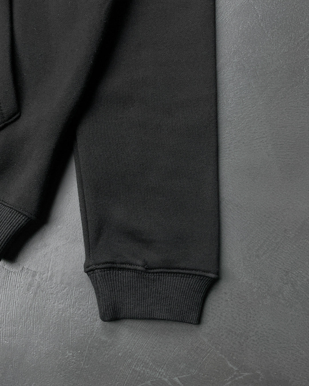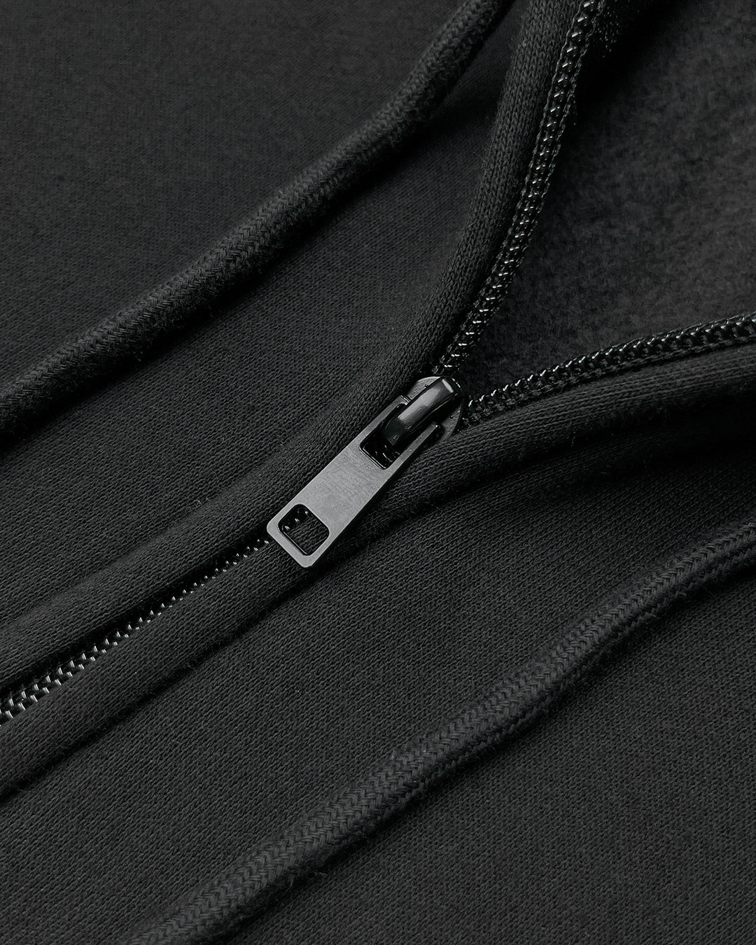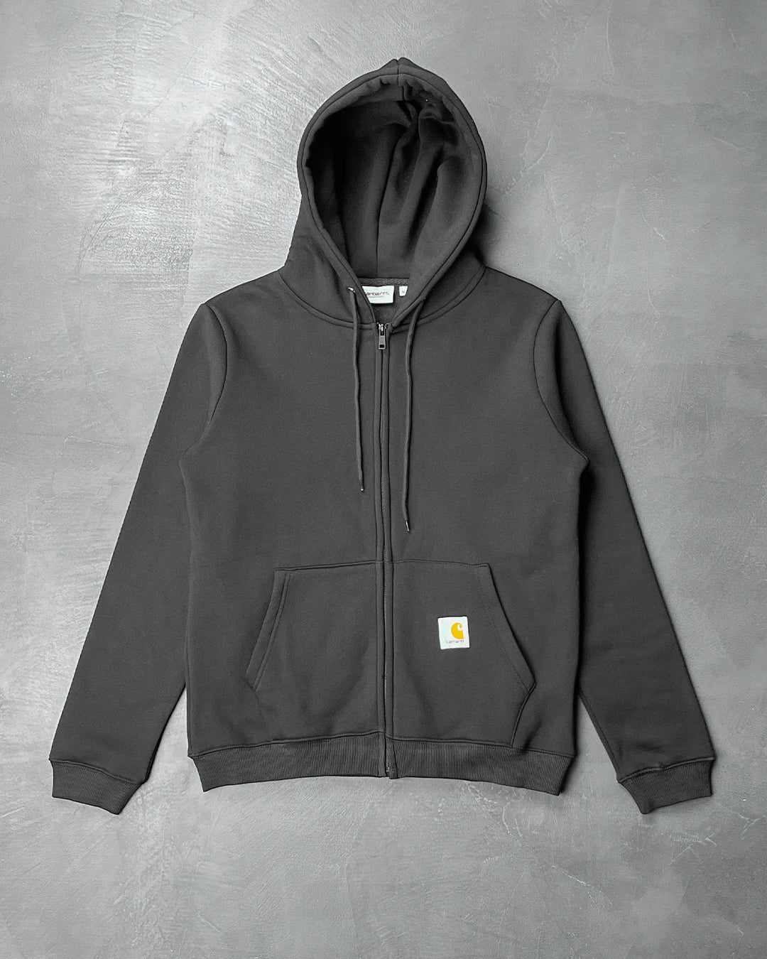 Худі на блискавці спереду виготовлене з бавовни. Має капюшон, що затягується на шнурок, довгі рукава, манжети і нижній поділ в рубчик. Дві накладні кишені спереду, одну з яких прикрашає нашитий квадратний логотип.