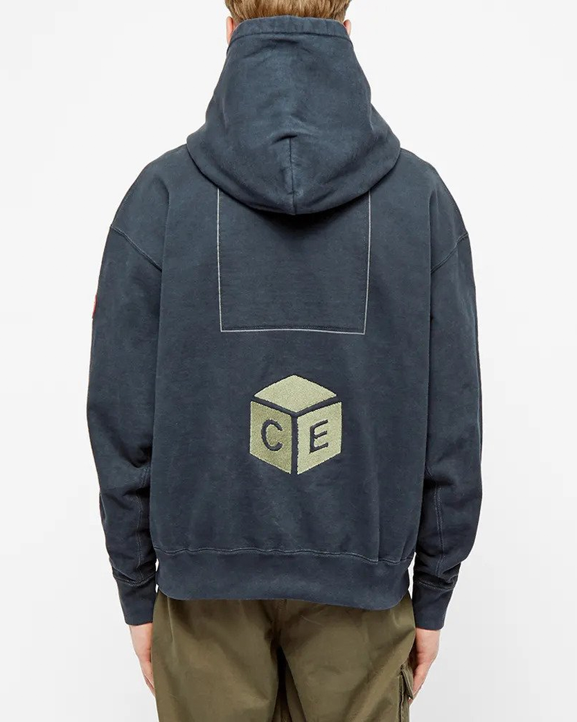 Вносячи геометричні вібрації у вашу ротацію вуличного одягу, Cav Empt представляє це темно-синє худі. Зручний бавовняний трикотаж, пофарбований для ледь помітного зношеного вигляду. Фіксований капюшон, зручна кишеня-кенгуру, еластичні манжети і поділ, вишита графіка на грудях та на спині, прогумована нашивка Cav Empt на лівому рукаві.