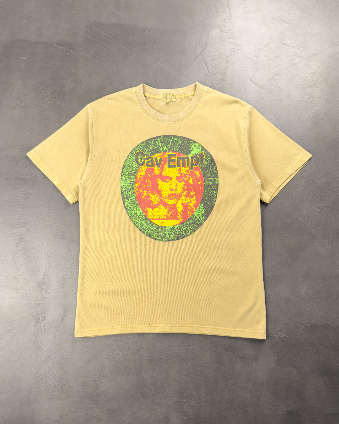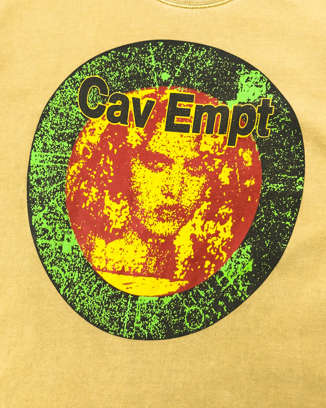 Японський лейбл Cav Empt, відомий тим, що звертається до своєї міленіальної аудиторії через безліч неоднозначних графічних зображень, цього сезону випускає футболку "2c.3E". Цей бавовняний силует, перефарбований для досягнення насиченого кольору, прикрашає круглий графічний малюнок на грудях, піксельний і загадковий, як і очікувалося, у стилі CE. Виріб завершується ребристим вирізом горловини, а на звороті - однойменною емблемою бренду, що вишита на плечах.