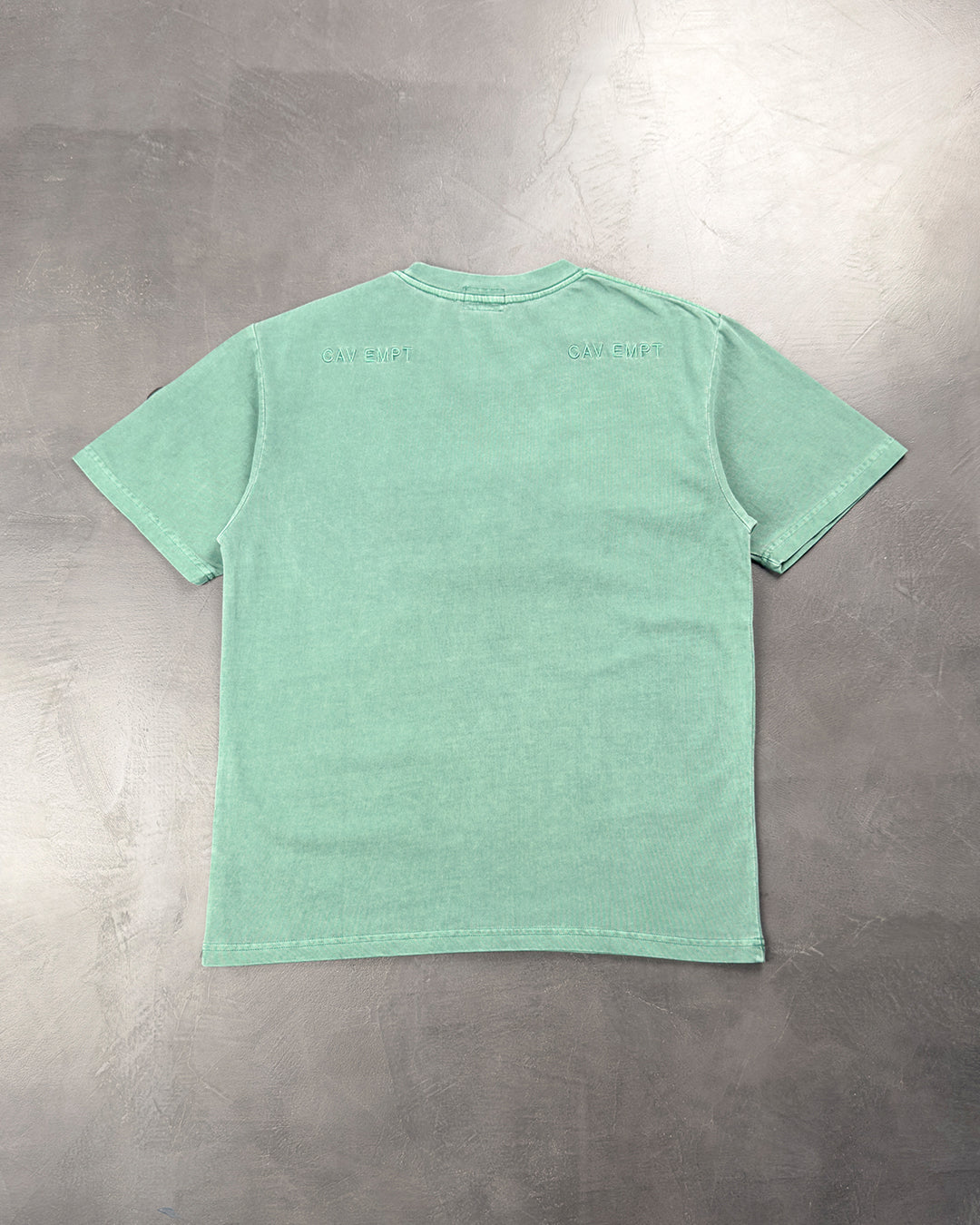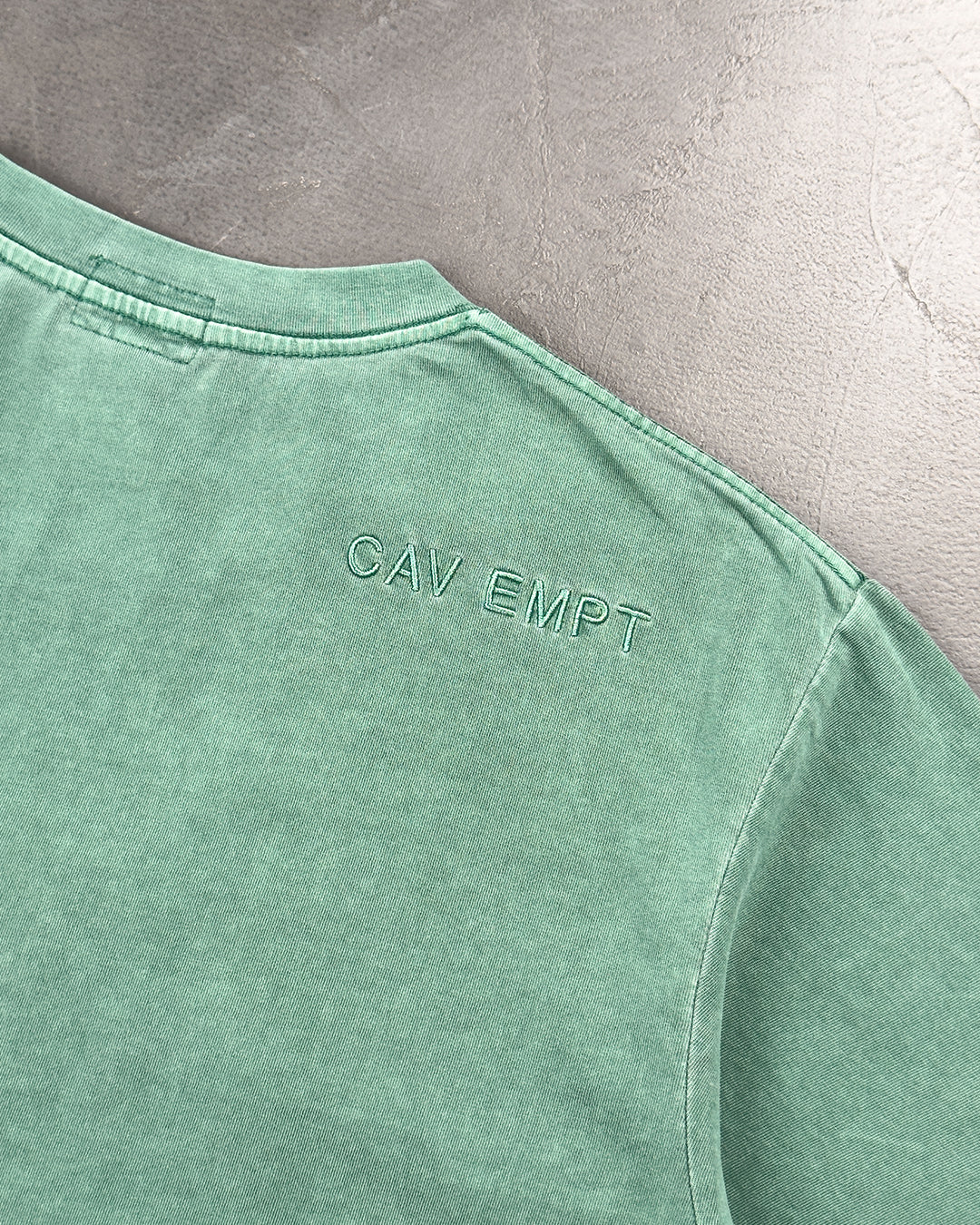 Футболка від CAV EMPT виготовлена з якісного бавовняного матеріалу, що був перефарбований для випраного вигляду. Класичний крій та круглий ребристий виріз горловини. Спереду на грудях та ззаду на плечах вишитий фірмовий брендинг, червона гумова нашивка з логотипом на лівому рукаві.