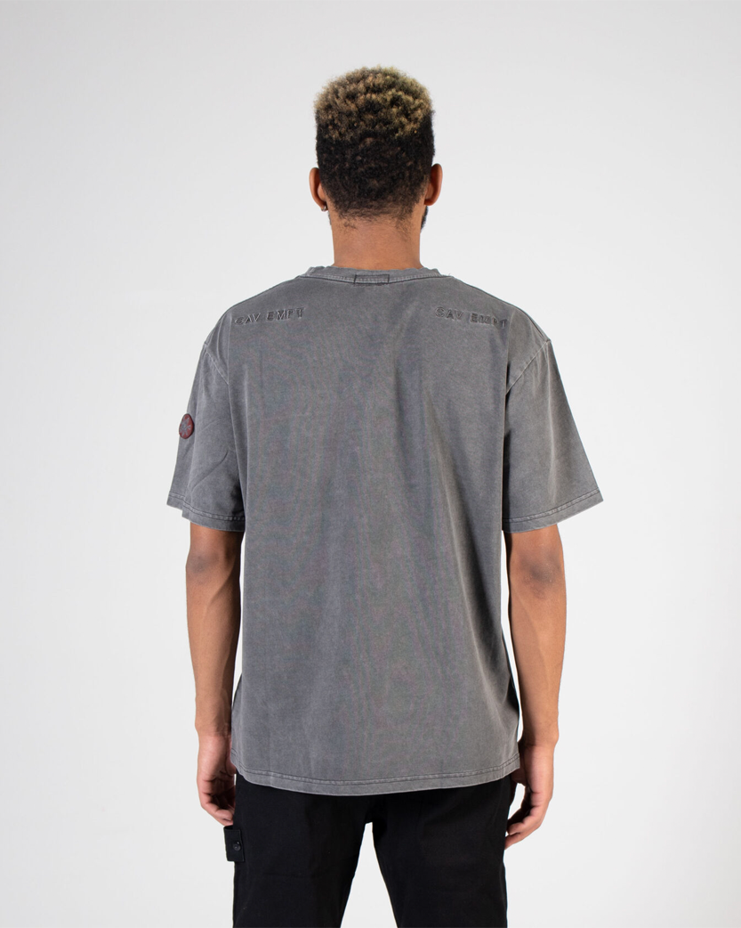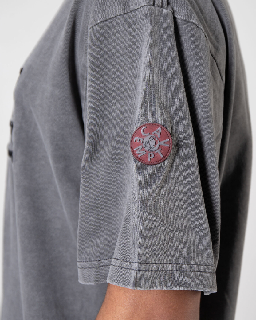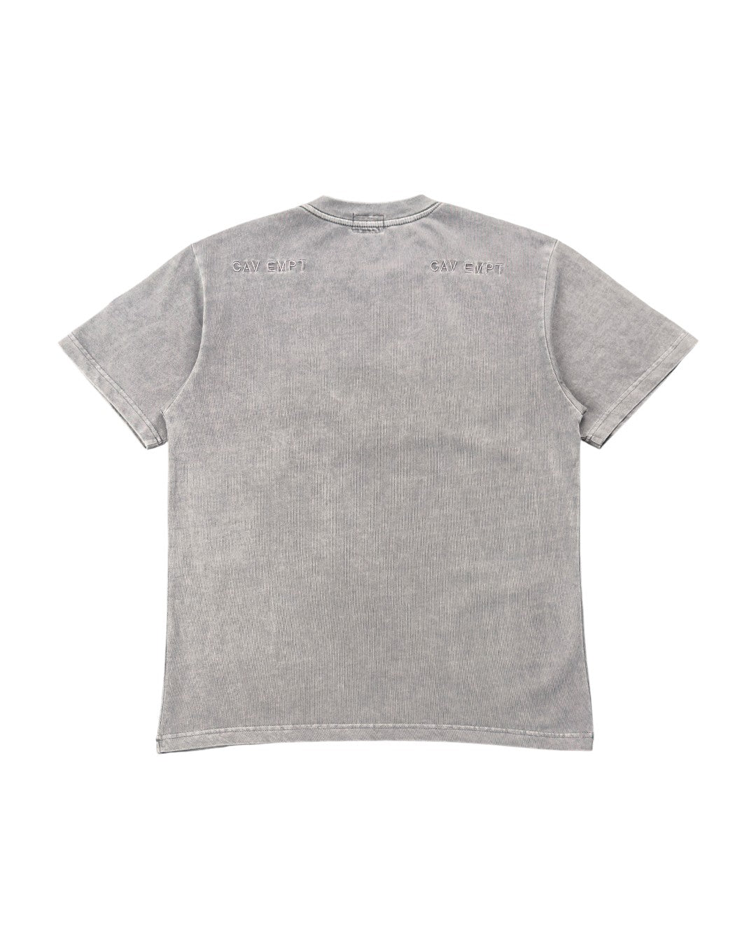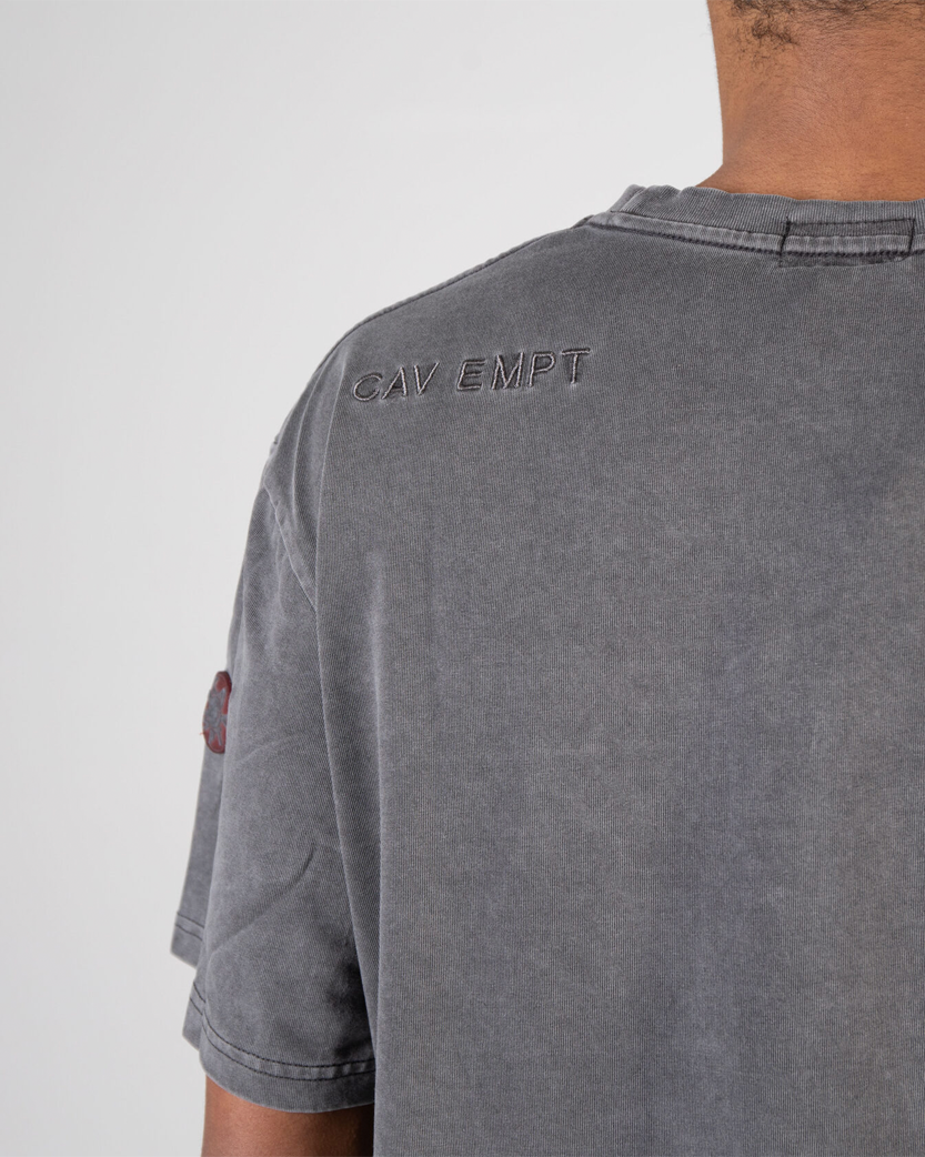 Футболка від CAV EMPT виготовлена з якісного бавовняного матеріалу, що був перефарбований для випраного вигляду. Класичний крій та круглий ребристий виріз горловини. Спереду на грудях та ззаду на плечах вишитий фірмовий брендинг, червона гумова нашивка з логотипом на лівому рукаві.