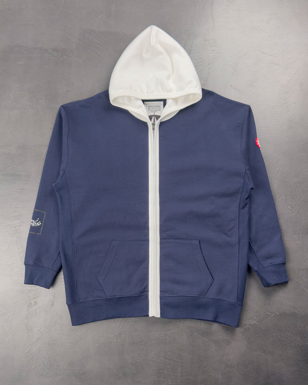Худі на блискавці від CAV EMPT виготовлене з бавовняного матеріалу. Капюшон, ребристі манжети і поділ, кишеня-кенгуру, розділена блискавкою. Худі доповнене друкованою графікою на правому рукаві та червоним прогумованим логотипом на лівому рукаві.