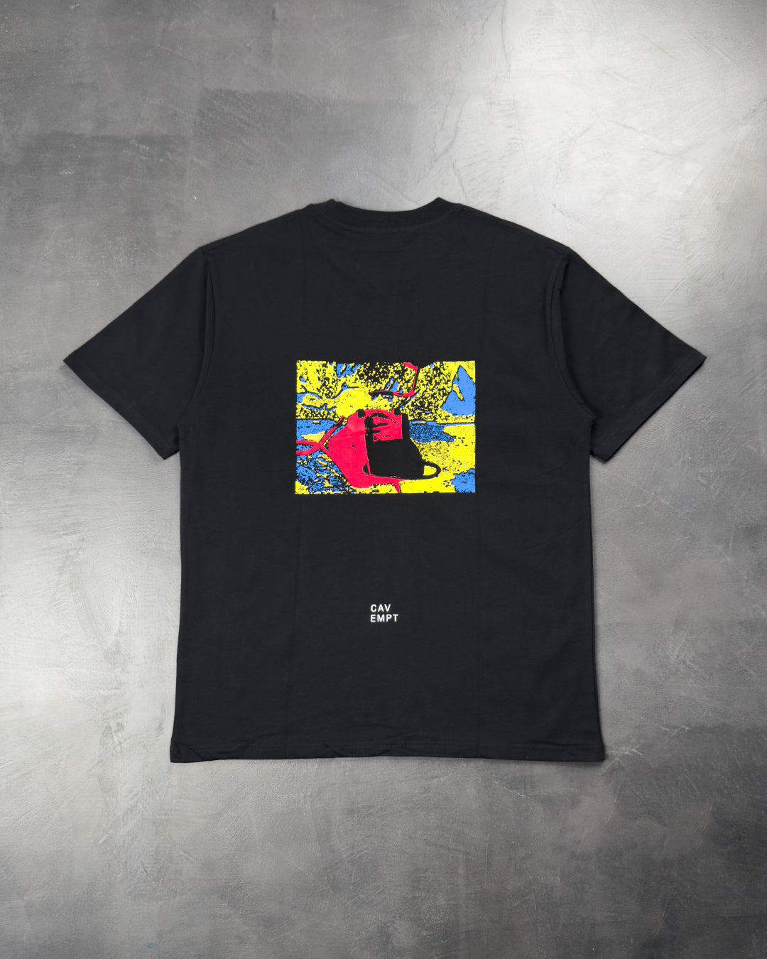 Футболка чорного кольору від CAV EMPT виготовлена з якісного бавовняного матеріалу. Класичний крій та круглий ребристий виріз горловини. Прикрашена яскравими графічними принтами та логотипом бренду.