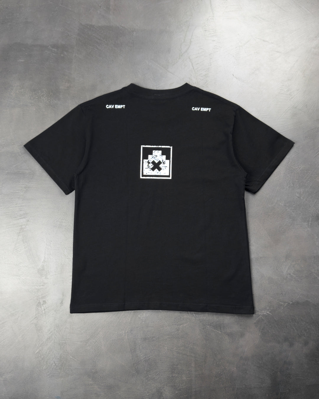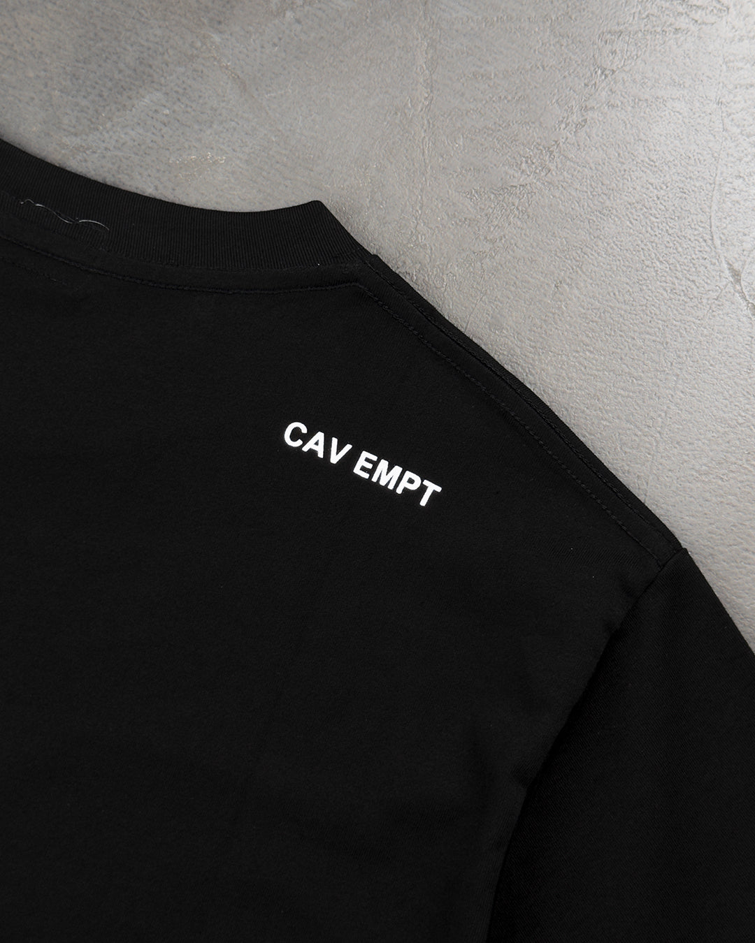 Футболка чорного кольору від CAV EMPT виготовлена з якісного бавовняного матеріалу. Класичний крій та круглий ребристий виріз горловини. Прикрашена графічними принтами та друкованим брендингом.