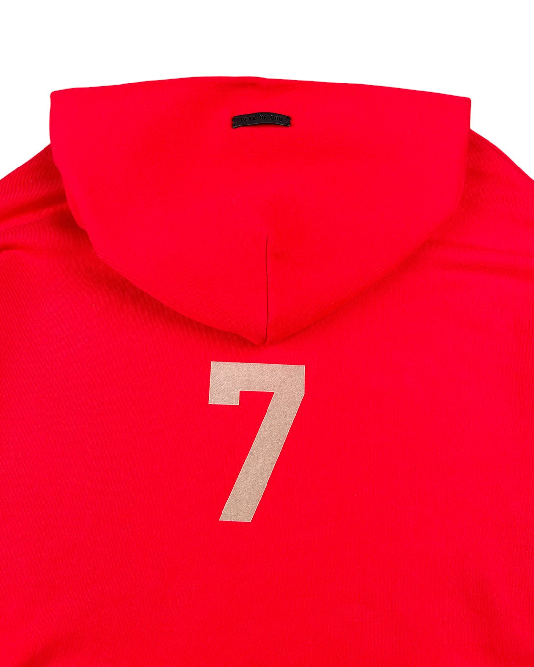 Натхненний стилями коледжів та бейсболу, Fear of God розфарбував це худі в яскраво-червоний колір і прикрасив його золотистим написом "7" на грудях, щоб відзначити свою сьому колекцію. Виготовлений у США з французької махрової бавовни, він утеплений флісом для максимального комфорту та тепла.