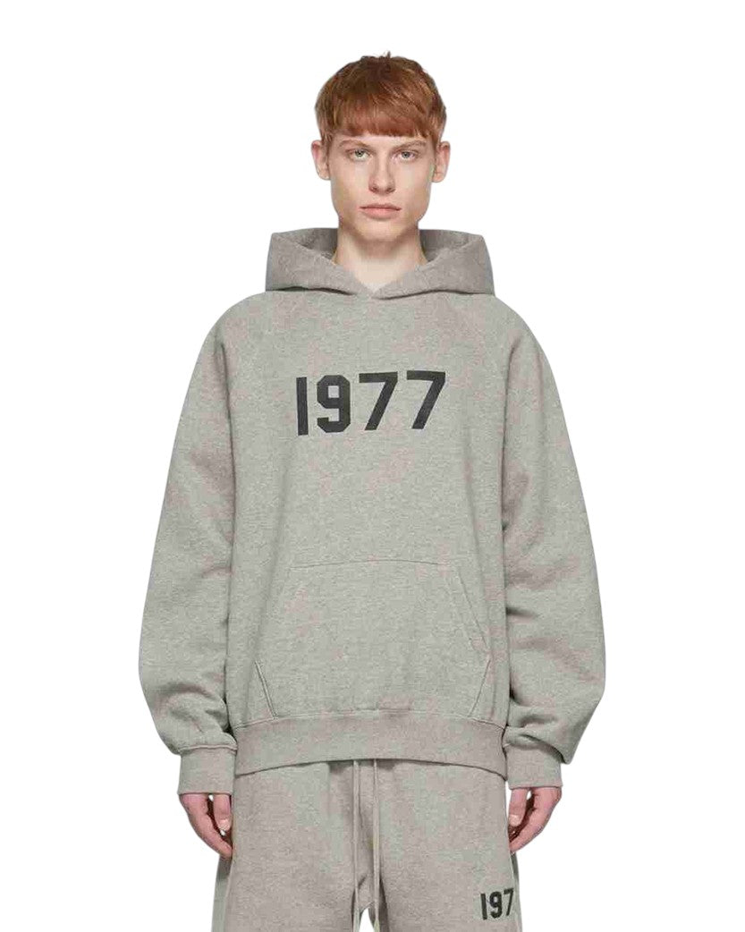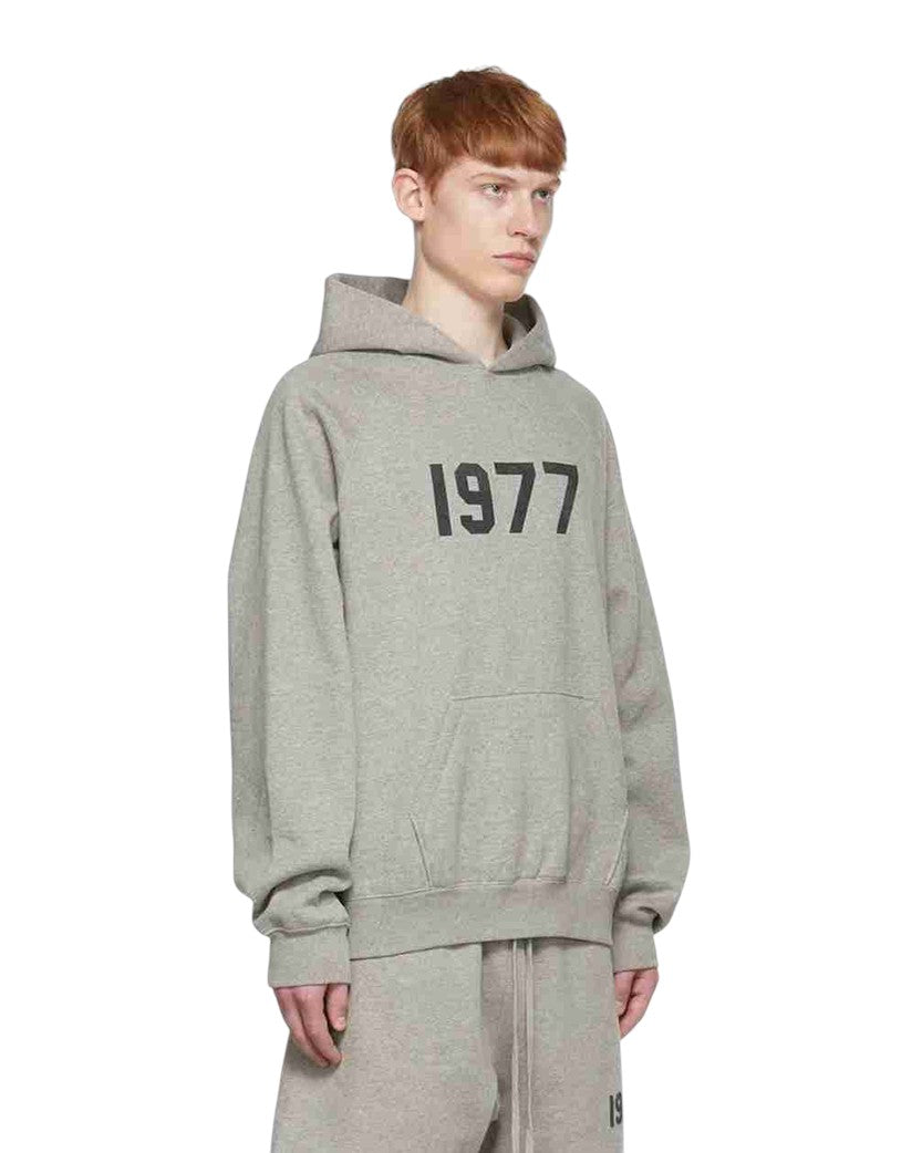 Худі Fear of God Essentials 1977 виконане з м’якої високоякісної бавовняної тканини з додаванням флісу для комфорту й тепла. Модель вирізняється фірмовим мінімалістичним дизайном із вільним кроєм, зручним капюшоном і еластичними манжетами та поясом. На грудях розміщений об’ємний напис “1977”, що відсилає до року народження засновника бренду Джеррі Лоренцо, а на капюшоні — традиційний гумовий логотип Essentials. Стильний та універсальний варіант, що поєднує повсякденний комфорт із впізнаваною естетикою Fear of God.