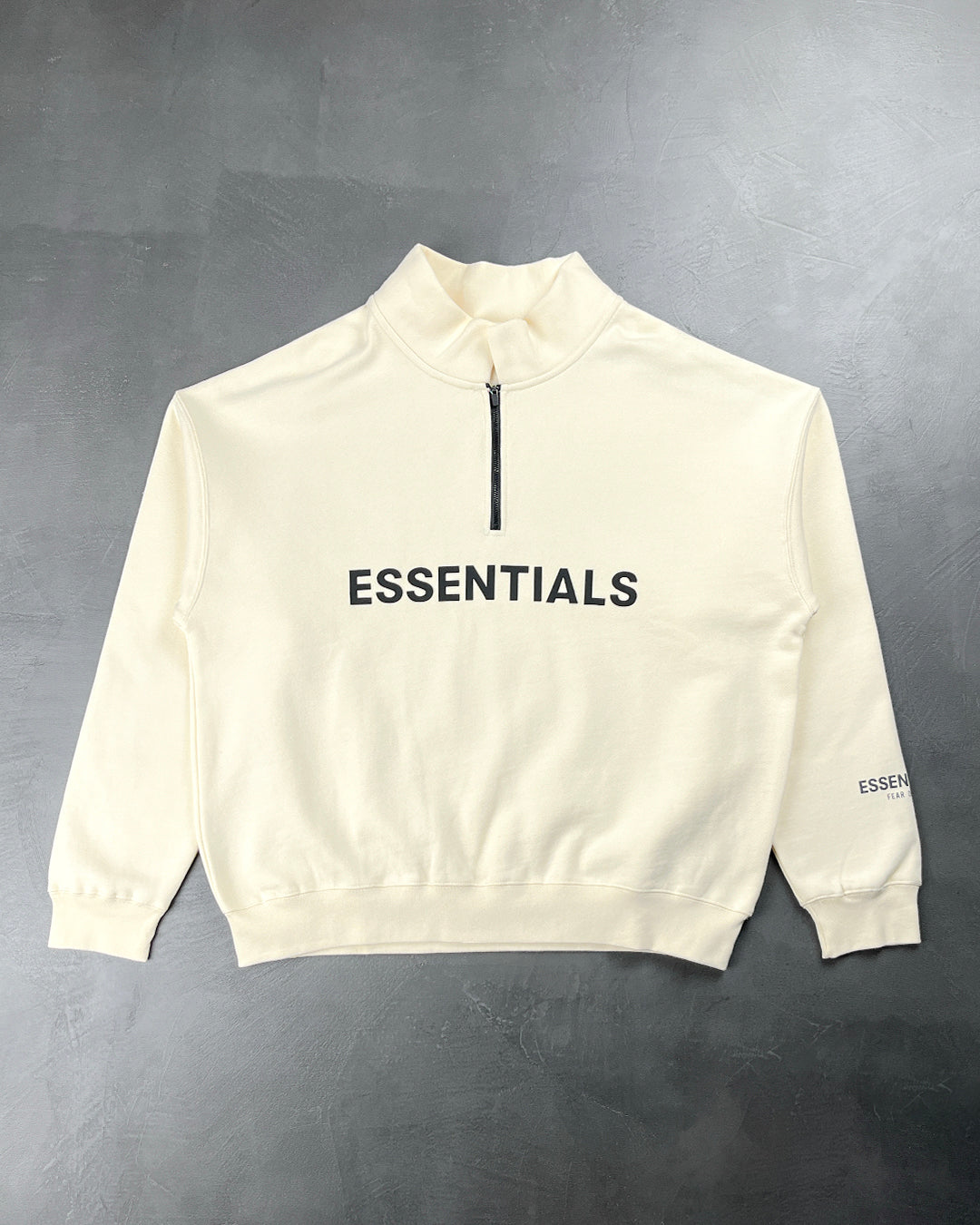 Fear Of God Essentials Front Logo Half Zip Sweat Buttercream