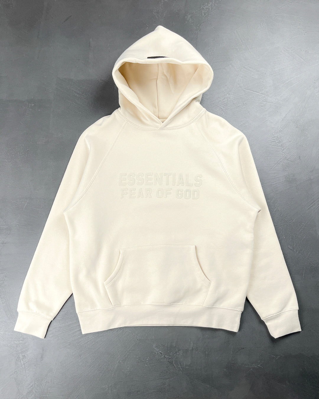 Худі Essentials Fear Of God має вільний крій, довгі рукава, подвійний капюшон, кишеню-кенгуру, сміливе графічне брендування на грудях та гумовий логотип бренду на капюшоні.