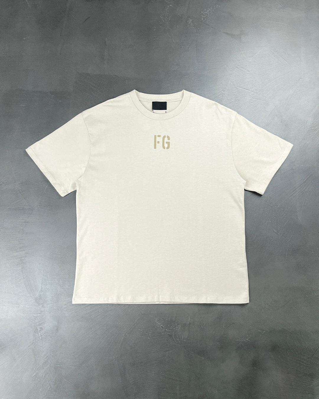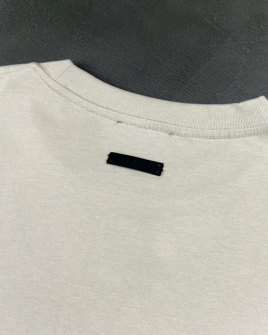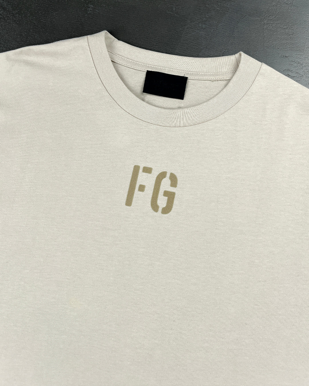 Для своєї довгоочікуваної сьомої колекції Fear of God представив останню версію логотипу FG, і цього сезону він надихається військовим дизайном, що нагадує трафарет. Логотип розміщено на грудях цієї футболки з чистої бавовни. Шкіряна нашивка з логотипом чорного кольору розміщена на задньому комірі.