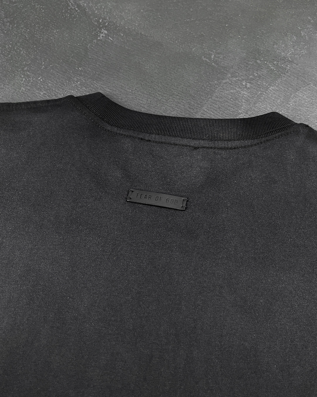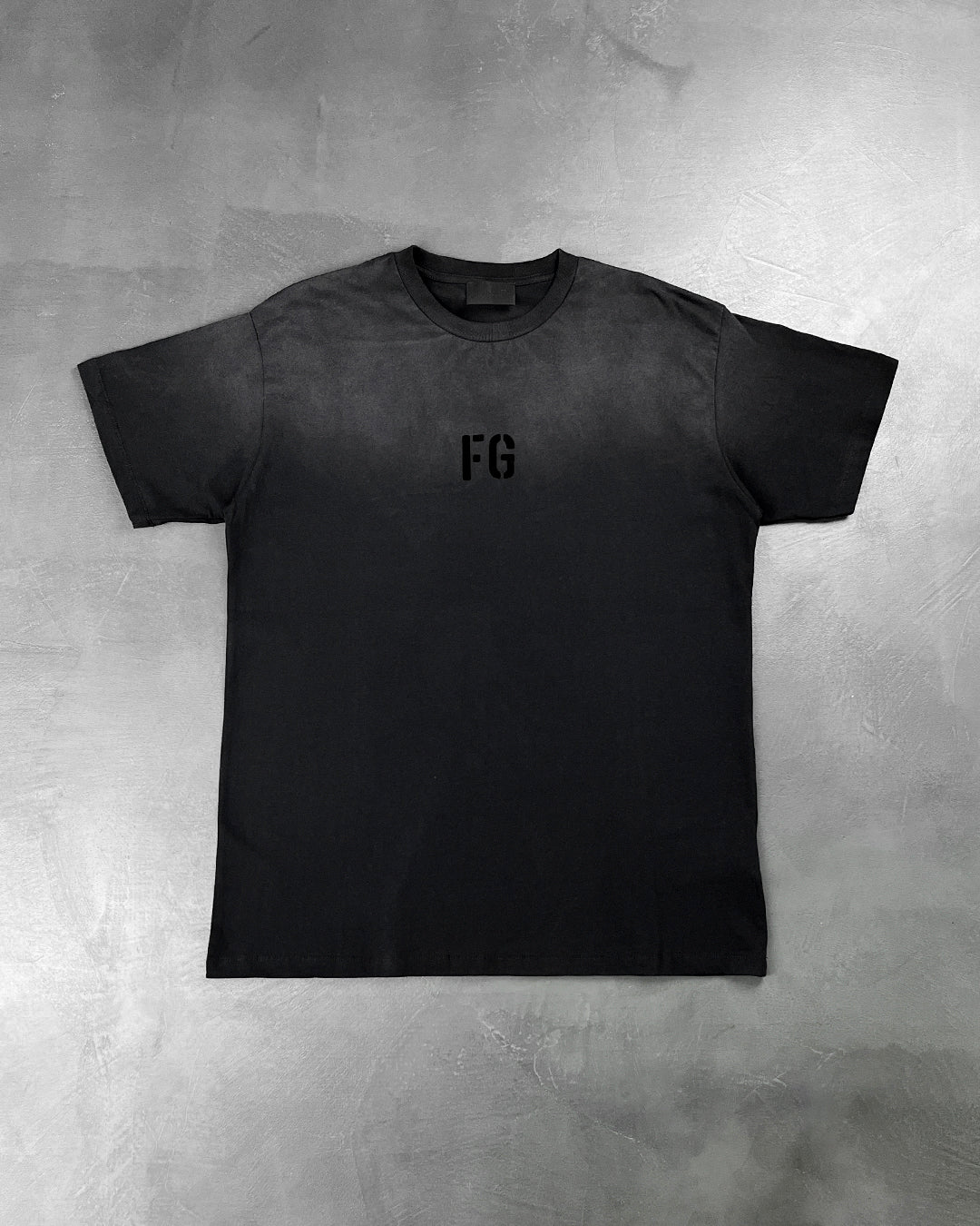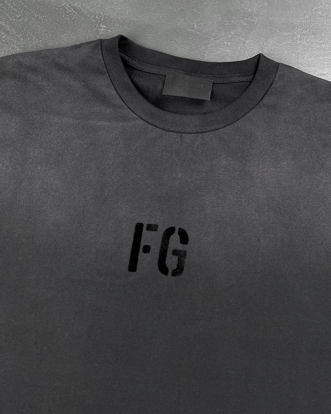 Для своєї довгоочікуваної сьомої колекції Fear of God представив останню версію логотипу FG, і цього сезону він надихається військовим дизайном, що нагадує трафарет. Логотип розміщено на грудях цієї футболки з чистої бавовни. Шкіряна нашивка з логотипом чорного кольору розміщена на задньому комірі.