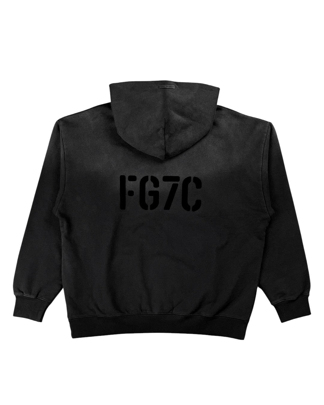 Ексклюзивно для Fear of God, лімітована серія худі FG7C, присвячена сьомій колекції. Логотип FG7C нанесений трафаретом на спині з фактурним оксамитовим флокуванням, антикварна латунна фурнітура, що надає виробу вінтажного вигляду. Виріб оброблений ребристими трикотажними манжетами та поясом з кишенею-кенгуру і шкіряною етикеткою Fear of God на капюшоні.