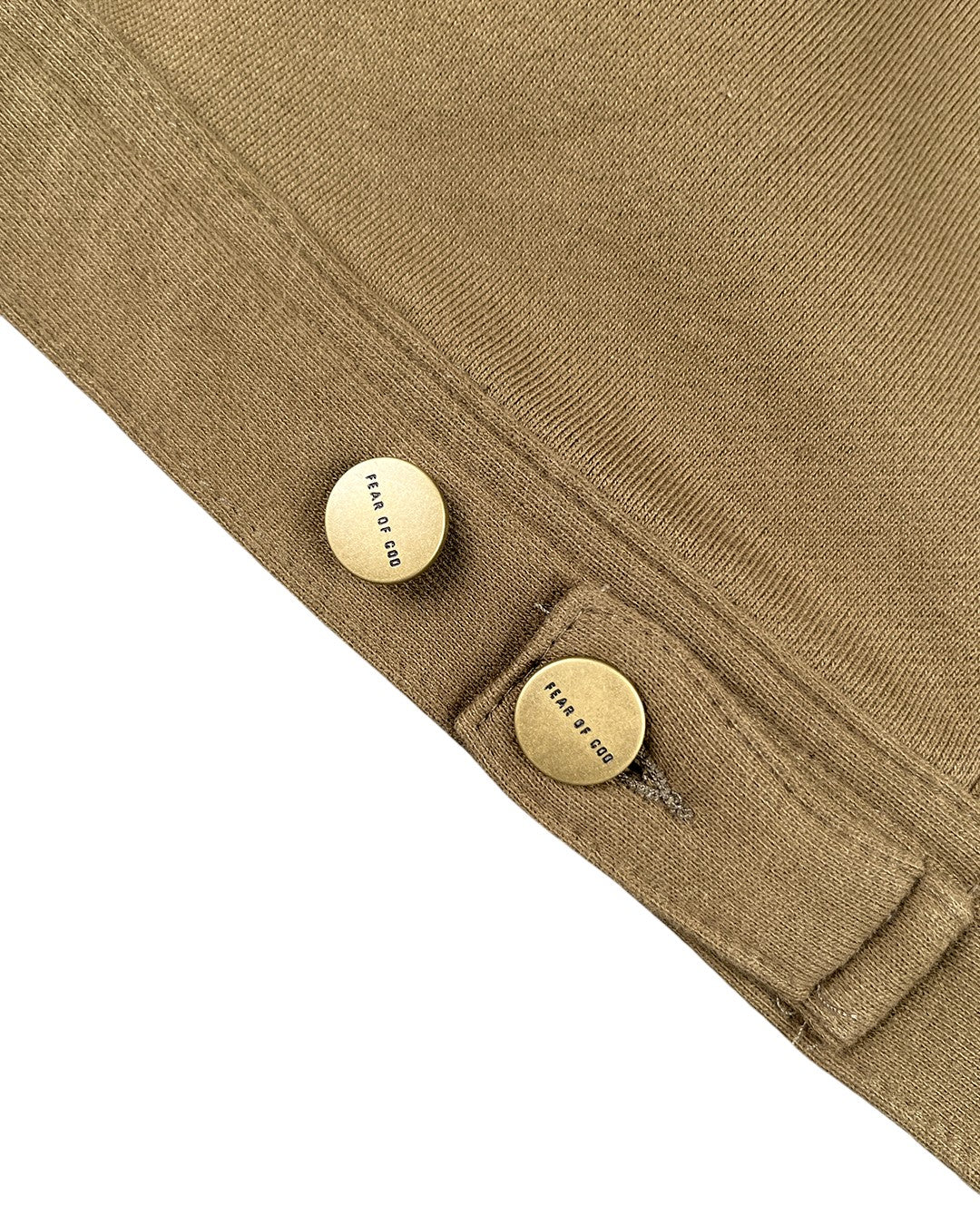 Бавовняна флісова куртка з довгим рукавом від Fear Of God. Застібка на ґудзиках спереду, кишені з клапаном на грудях, прорізні кишені на талії, манжети на одному ґудзику. Тиснена шкіряна нашивка з логотипом на задньому комірі. Фурнітура з гравіюванням логотипу в античному золотому тоні.