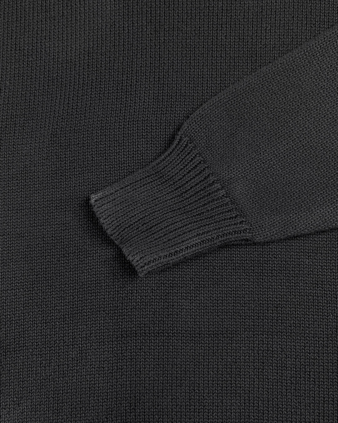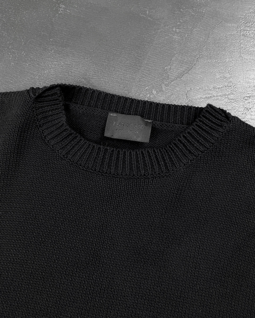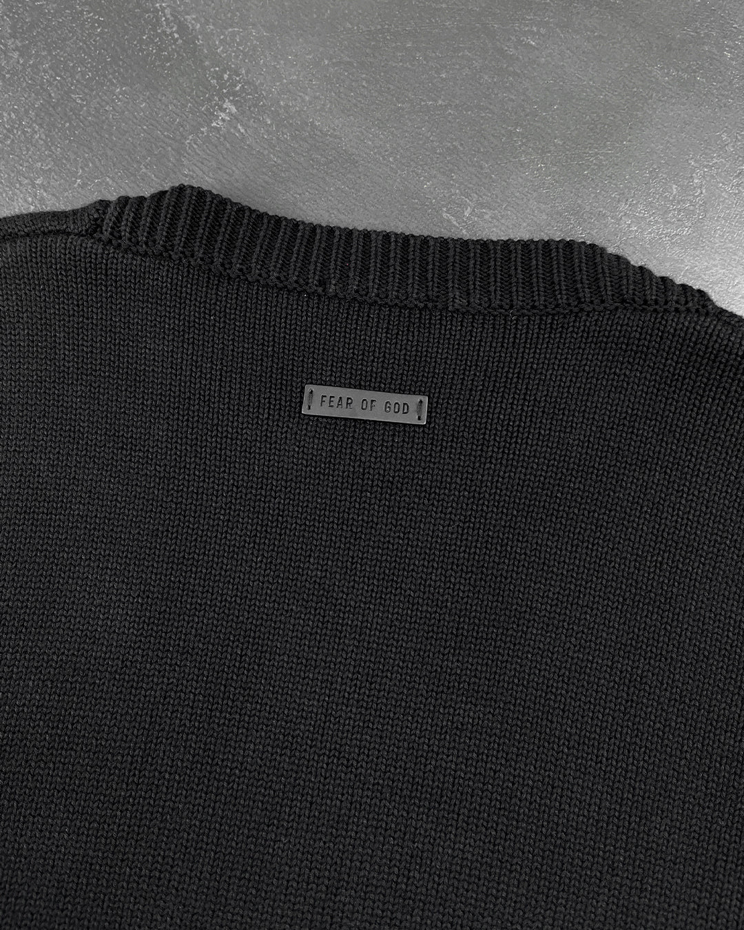 В'язаний вовняний светр з довгими рукавами від Fear Of God. Ребристий трикотажний комір, манжети та поділ. Комір-стійка, спущені плечі та шкіряна нашивка з логотипом на задньому комірі.