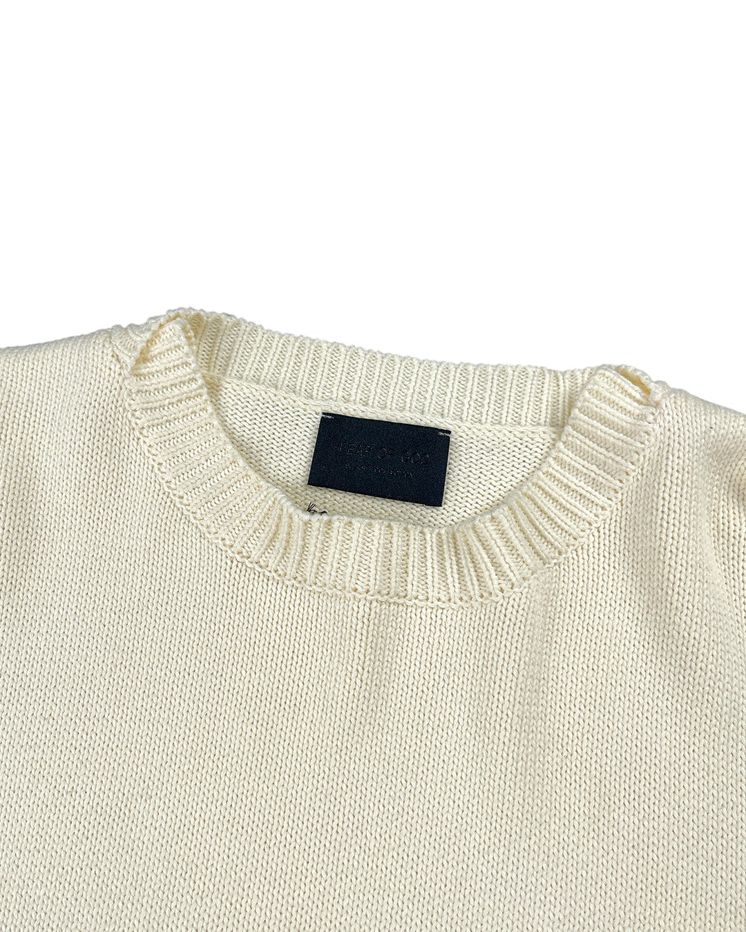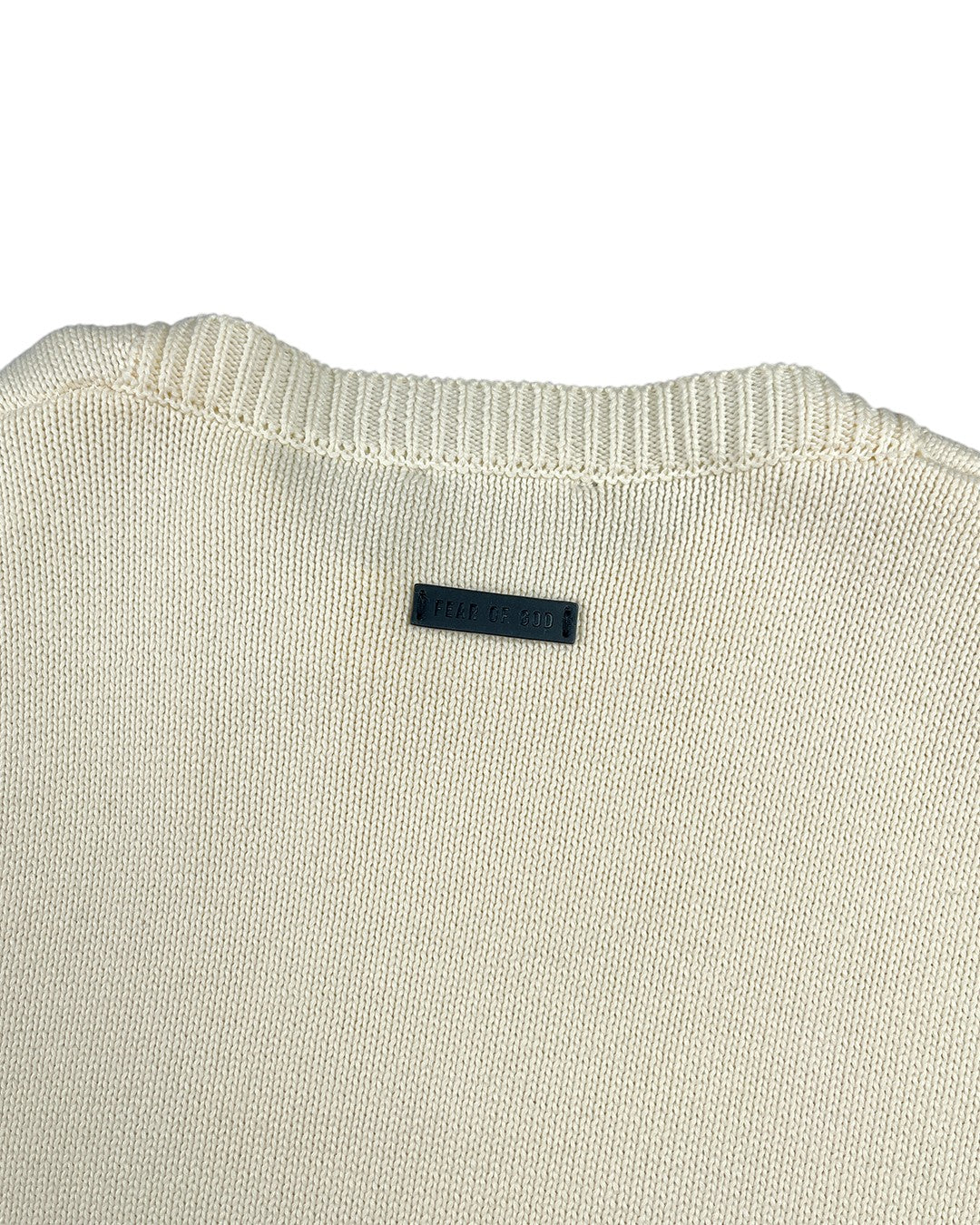 В'язаний вовняний светр з довгими рукавами від Fear Of God. Ребристий трикотажний комір, манжети та поділ. Комір-стійка, спущені плечі та шкіряна нашивка з логотипом на задньому комірі.