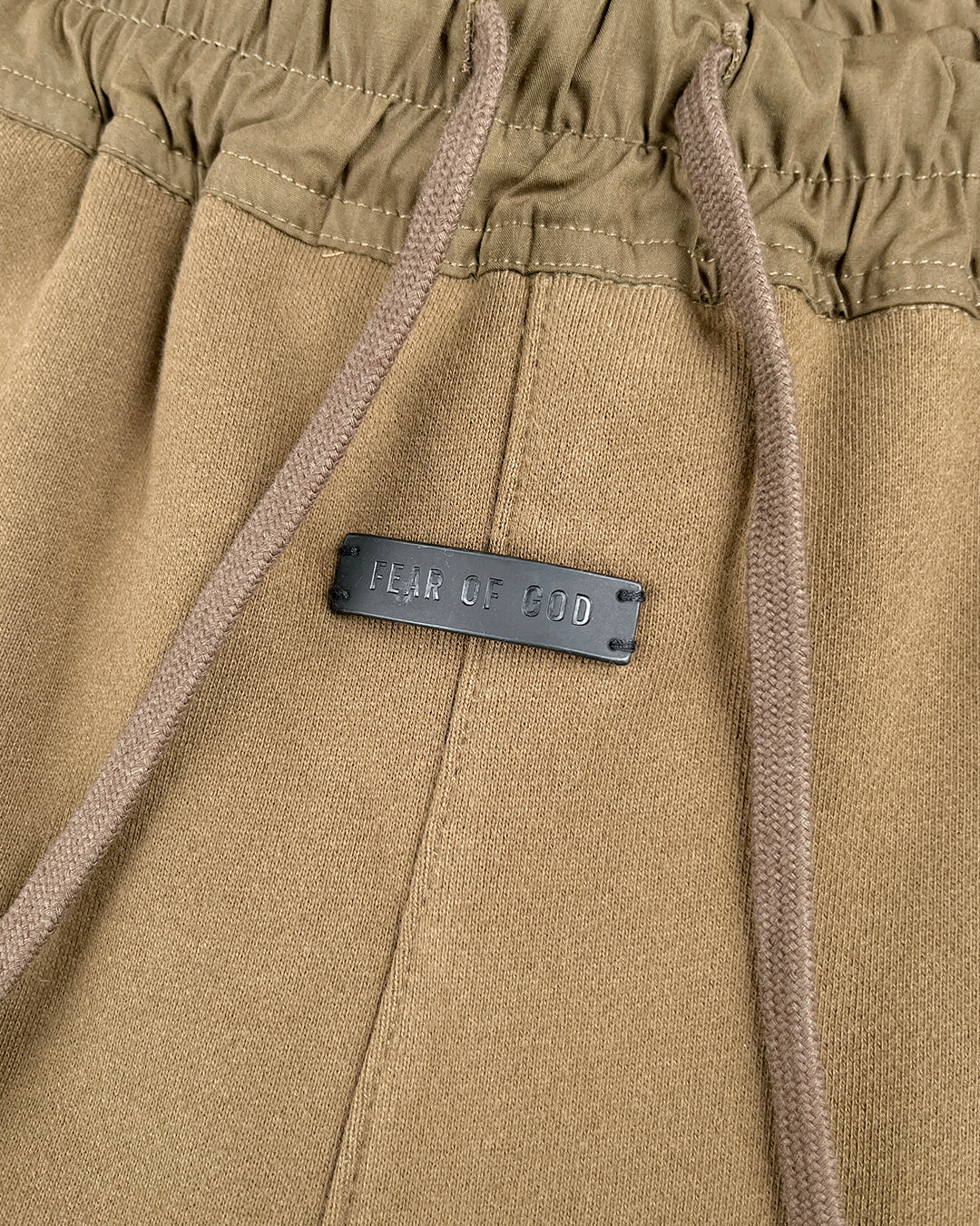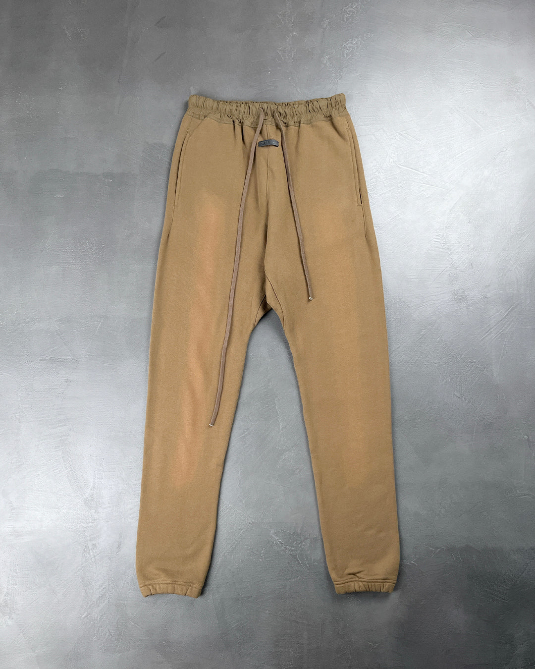 Спортивні штани Fear of God виготовлені з м'якого бавовняного трикотажу з флісовою основою, який випраний, щоб досягти вигорілого на сонці вінтажного вигляду, унікального для кожної пари. Штани прикрашені фірмовим логотипом бренду. Вони звужені донизу і не мають задніх кишень, що надає їм обтічного силуету, який пасуватиме до неструктурованого одягу та худі.