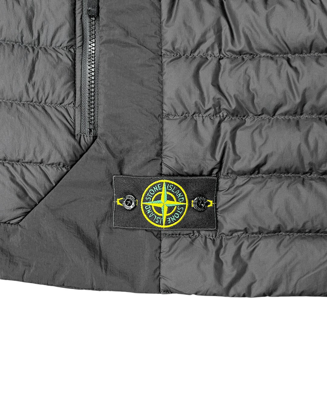 Жилет Stone Island зшитий з нейлону і наповнений кращим пір'ям, обов'язково зігріє вас у холодну погоду. Ребристі вставки розширюють діапазон рухів, а двостороння блискавка по всій довжині надійно закриває цей універсальний предмет одягу.
