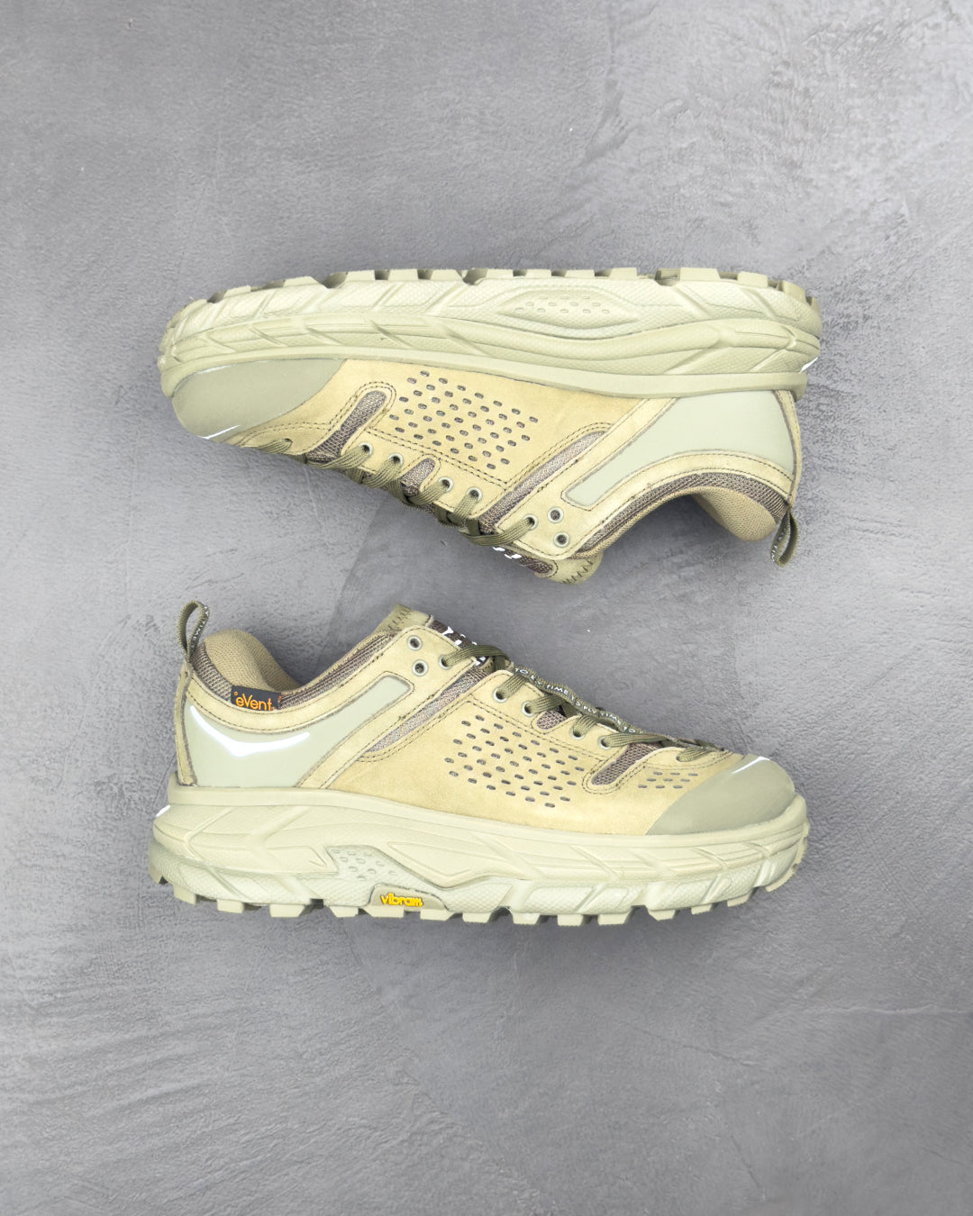 Виготовлені з міцного нейлону та нубуку, Tor Ultra Low від HOKA ONE ONE - це новаторська суміш бігових кросівок та трекінгових черевиків. Водонепроникна мембрана eVent® обіцяє тримати ноги сухими, а технологія Meta-Rocker у проміжній підошві забезпечує плавність ходу. Підошва з гуми Vibram® MegaGrip забезпечує відмінне зчеплення з поверхнею.
