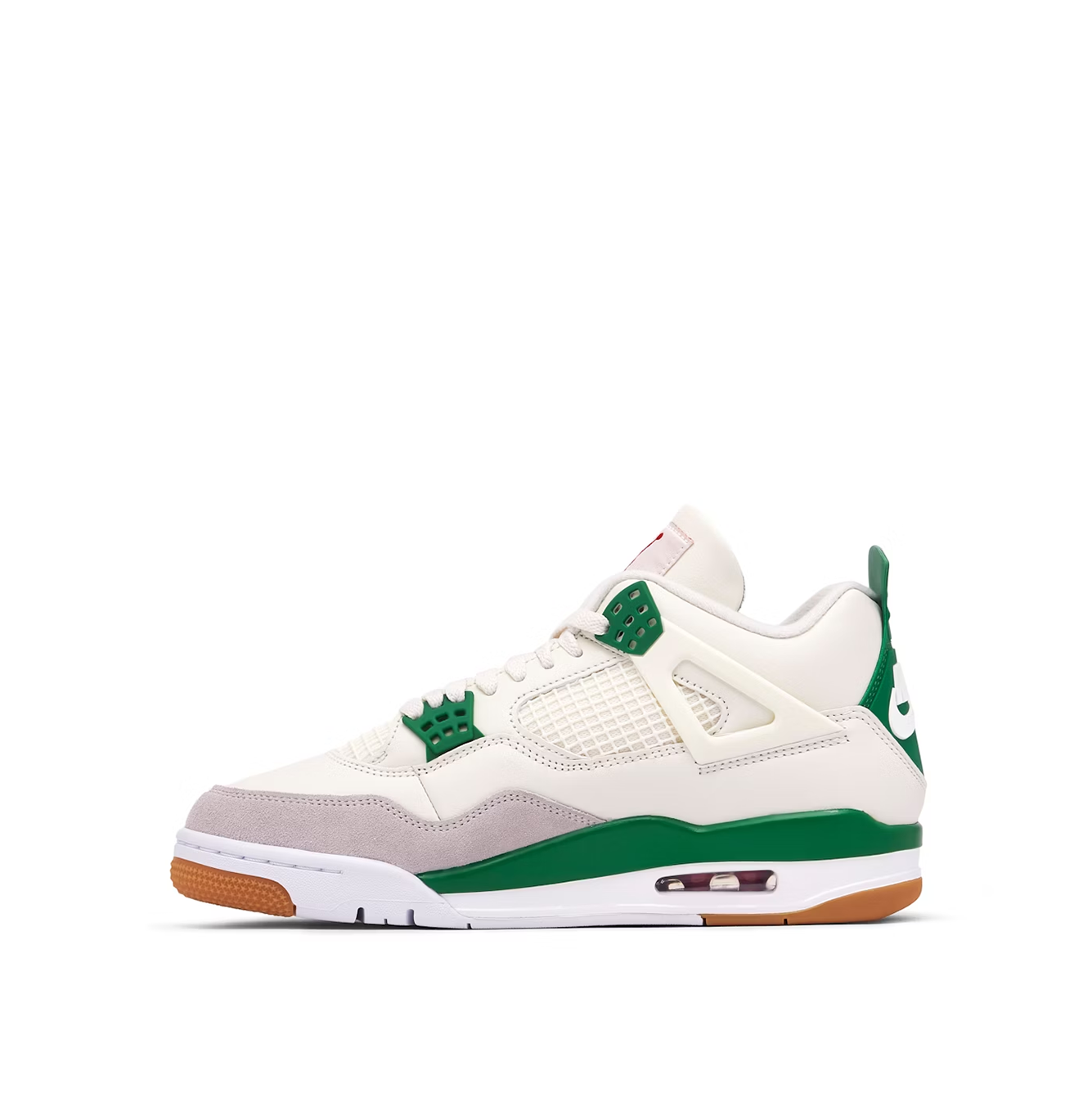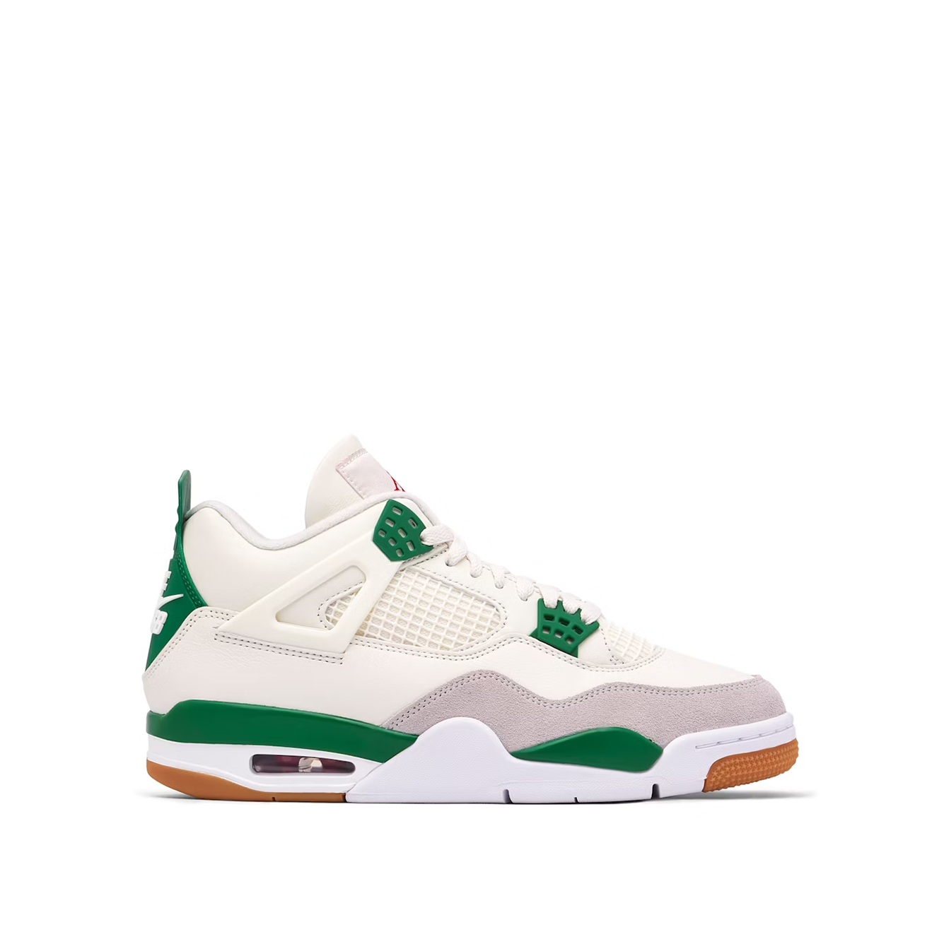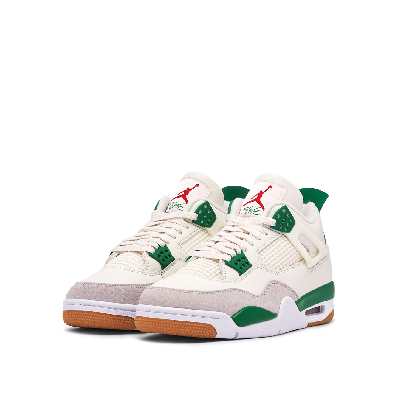 Після співпраці 2019 року Nike SB та Air Jordan знову об'єдналися, щоб випустити кросівки Jordan 4 Retro SB Pine Green. Виготовлені з суміші сітки, шкіри та замші, кросівки прикрашені штрихами брендингу. Технологія Air в проміжній підошві забезпечує комфорт, гумова підошва забезпечує зчеплення з поверхнею, а набивка в комірі додає додаткову амортизацію. Застібаються за допомогою класичної системи шнурівки.