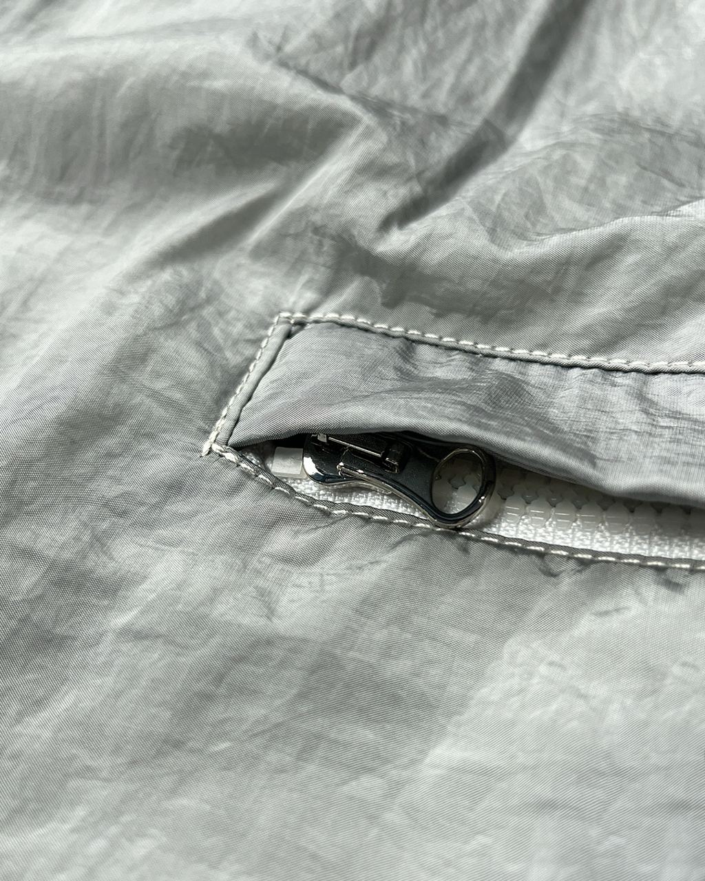 Шорти-бермуди з нової тканини Stone Island з переливчастим нейлоном Nylon Metal. Еволюція цієї культової тканини полягає у використанні регенерованої пряжі ECONYL®: відпрацьований нейлон, як до, так і після споживання, переробляється за допомогою складного процесу деполімеризації, щоб створити волокно, яке має ті ж самі властивості, що й нейлон з викопної сировини. Готовий виріб проходить складну процедуру подвійного фарбування.