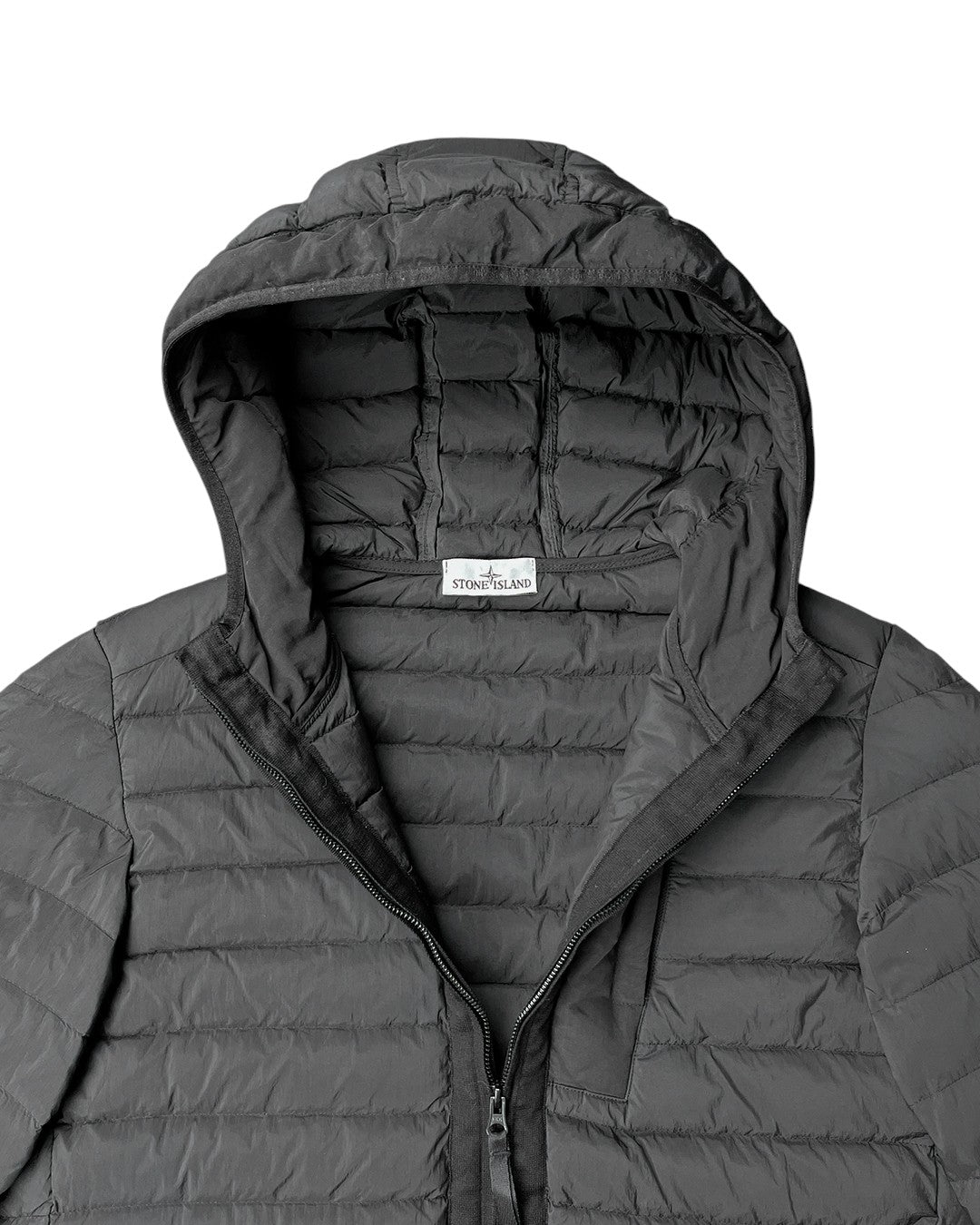 Куртка з легкого еластичного нейлону, який за допомогою спеціальної техніки плетіння автоматично створює на ткацькому верстаті відділення, куди потім вводять пір’яну підкладку. Таким чином уникають швів, а перевага полягає в значному збільшенні утримання пера всередині камер. Готовий одяг підбивається шляхом прямого вприскування найтоншим пір’ям, спеціально обробленим для захисту від фарбування одягу. Додавання спеціального агента до рецептури барвника робить одяг стійким до падіння.