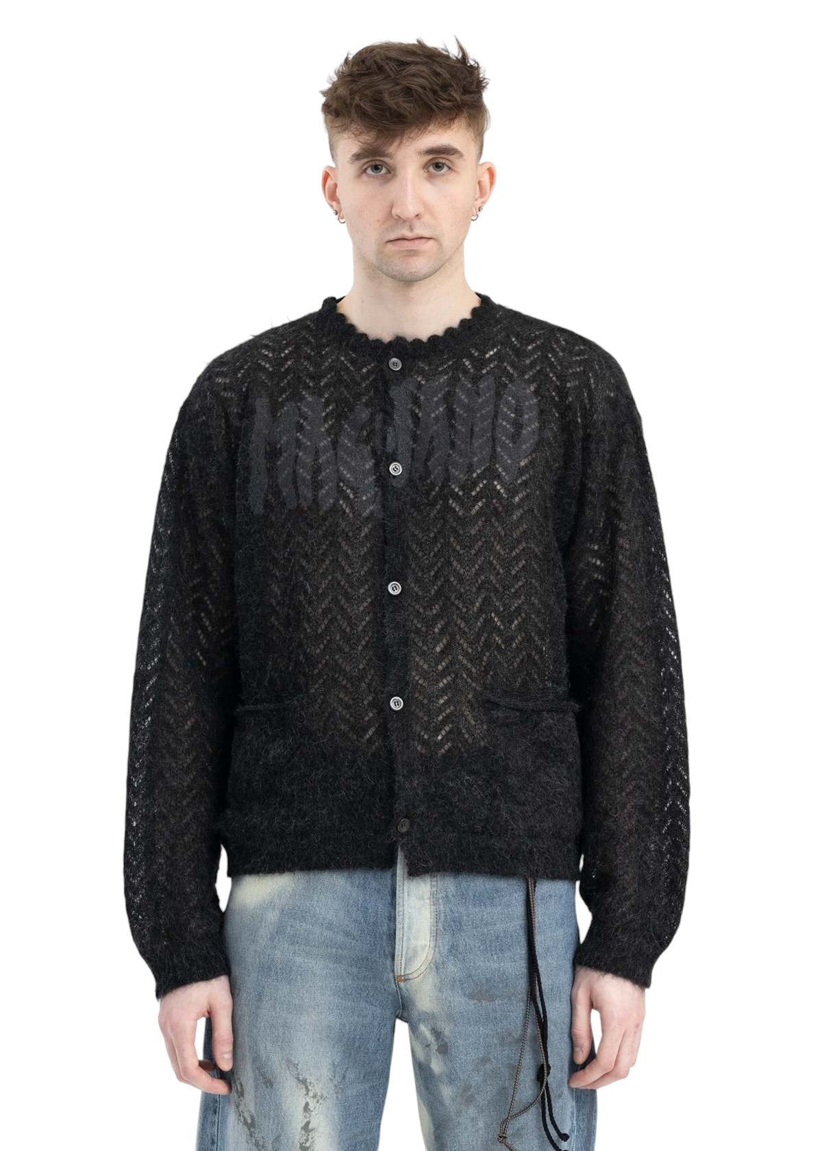 Magliano Bimbo Cardigan Black — стильний кардиган з мохерової суміші, який поєднує комфорт і елегантність. Він має рельєфний край на горловині, застібку на ґудзики, логотип на грудях та дві кишені. Цей кардиган забезпечує тепло і м'якість, ставши відмінним вибором для прохолодної погоди.
