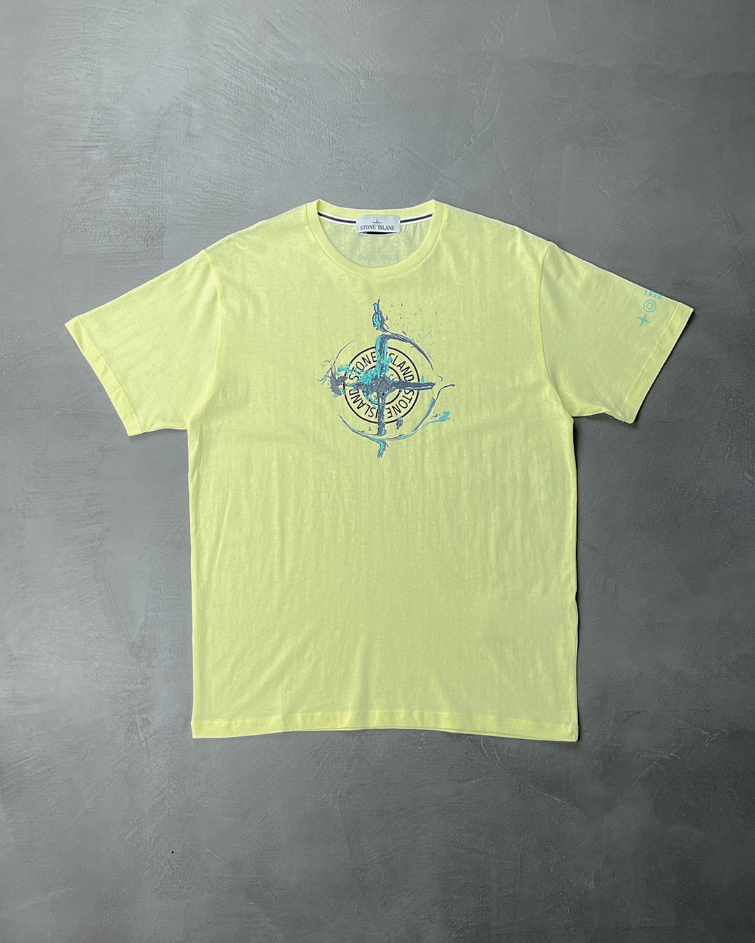 Футболка з короткими рукавами з бавовняного джерсі. Виріб пофарбовано в готовому вигляді. Горловина в гумку. Спереду стилізований графічний принт Stone Island у вигляді рози вітрів. Ззаду нижче горловини принт-логотип Stone Island.