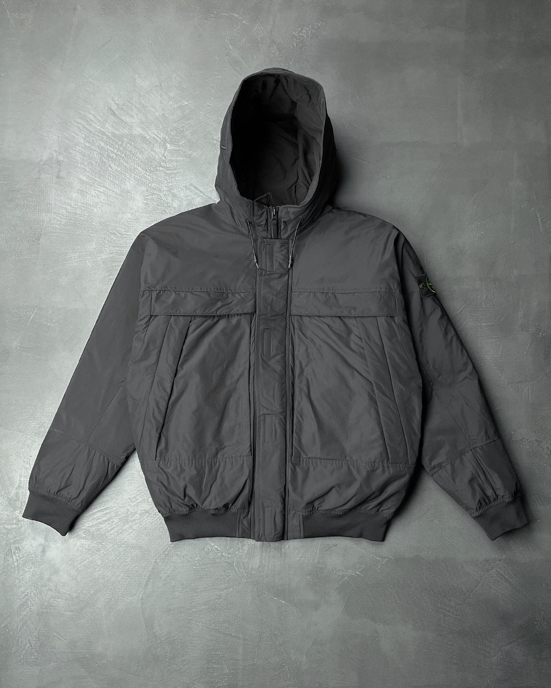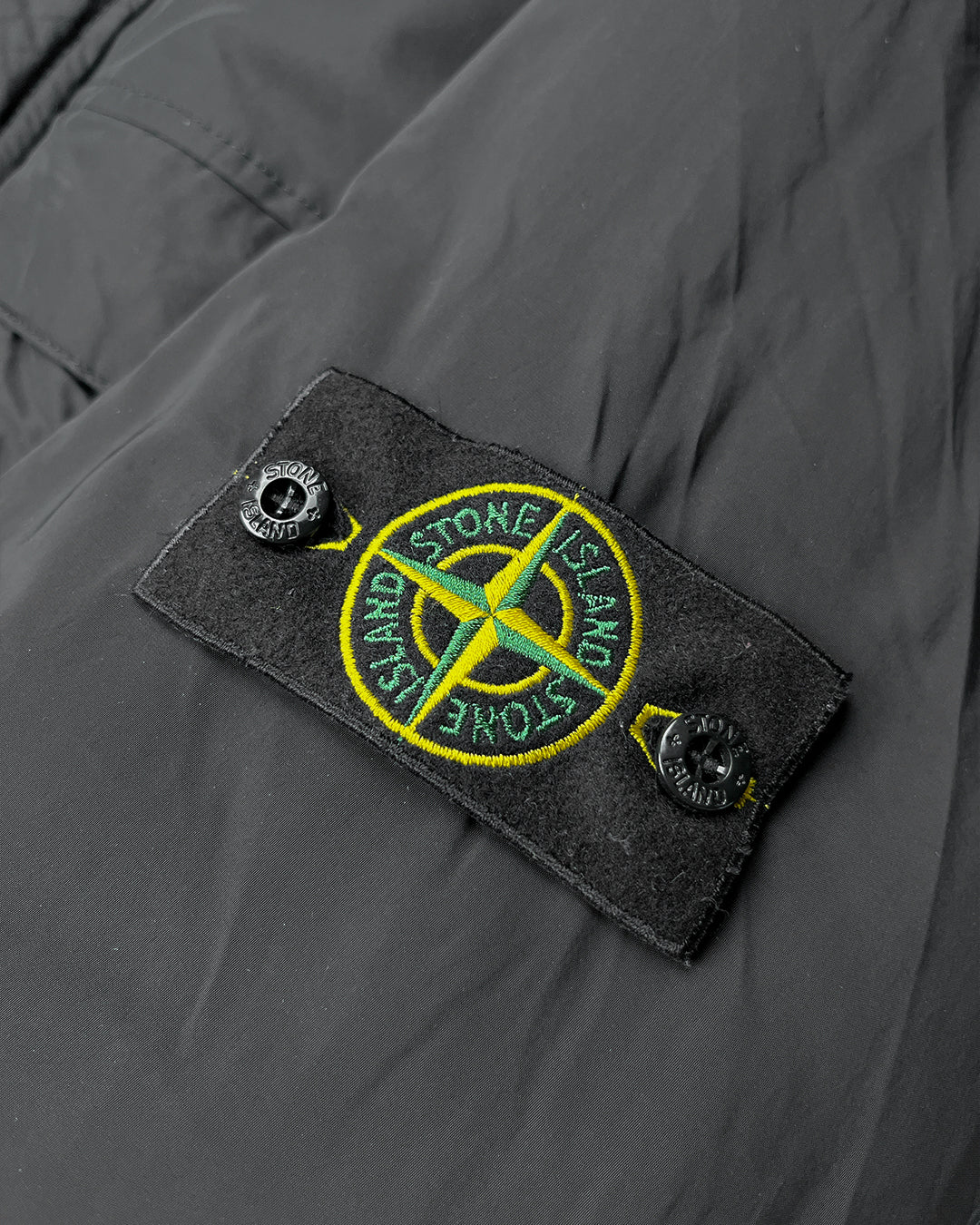 Тканина Stone Island Micro Reps військового призначення з ультратовстим, вітрозахисним плетінням і водовідштовхувальним покриттям є прикладом дальновидного підходу бренду до текстилю. Вона утворює зовнішню оболонку цього пуховика, але також утеплена пухом для додаткового комфорту. Великі передні кишені та нашивка у формі компаса надають йому утилітарний вигляд, який так часто асоціюється з цим брендом.