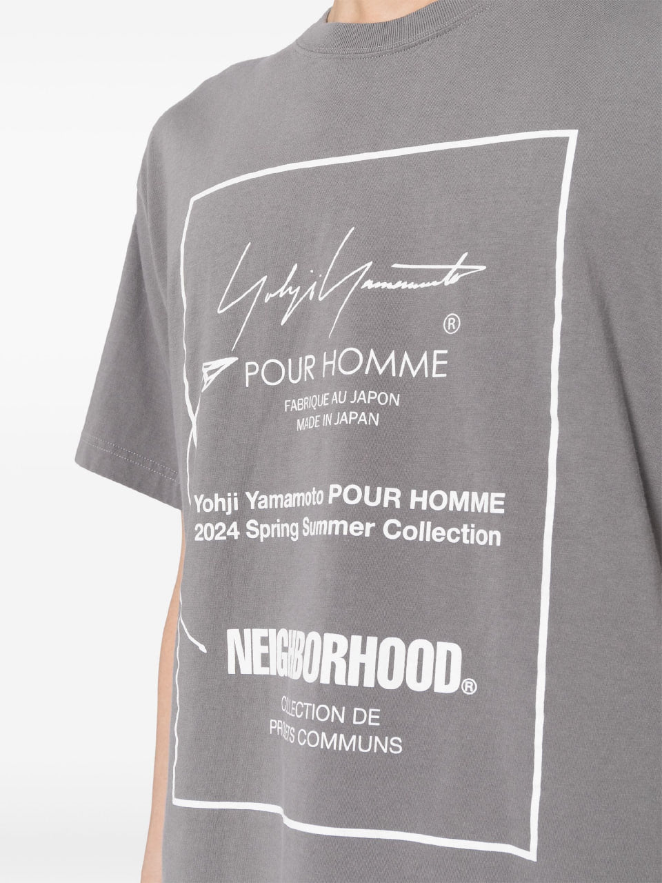 Neighborhood x Yohji Yamamoto Logo Print T-Shirt Grey