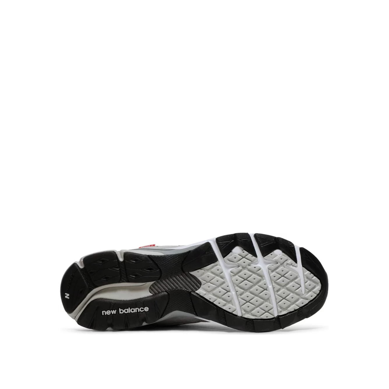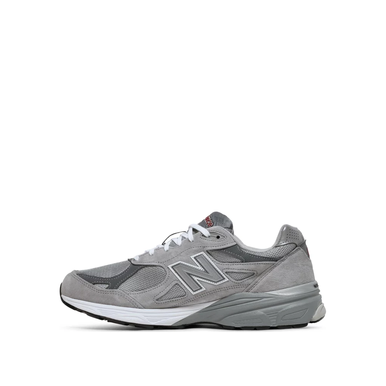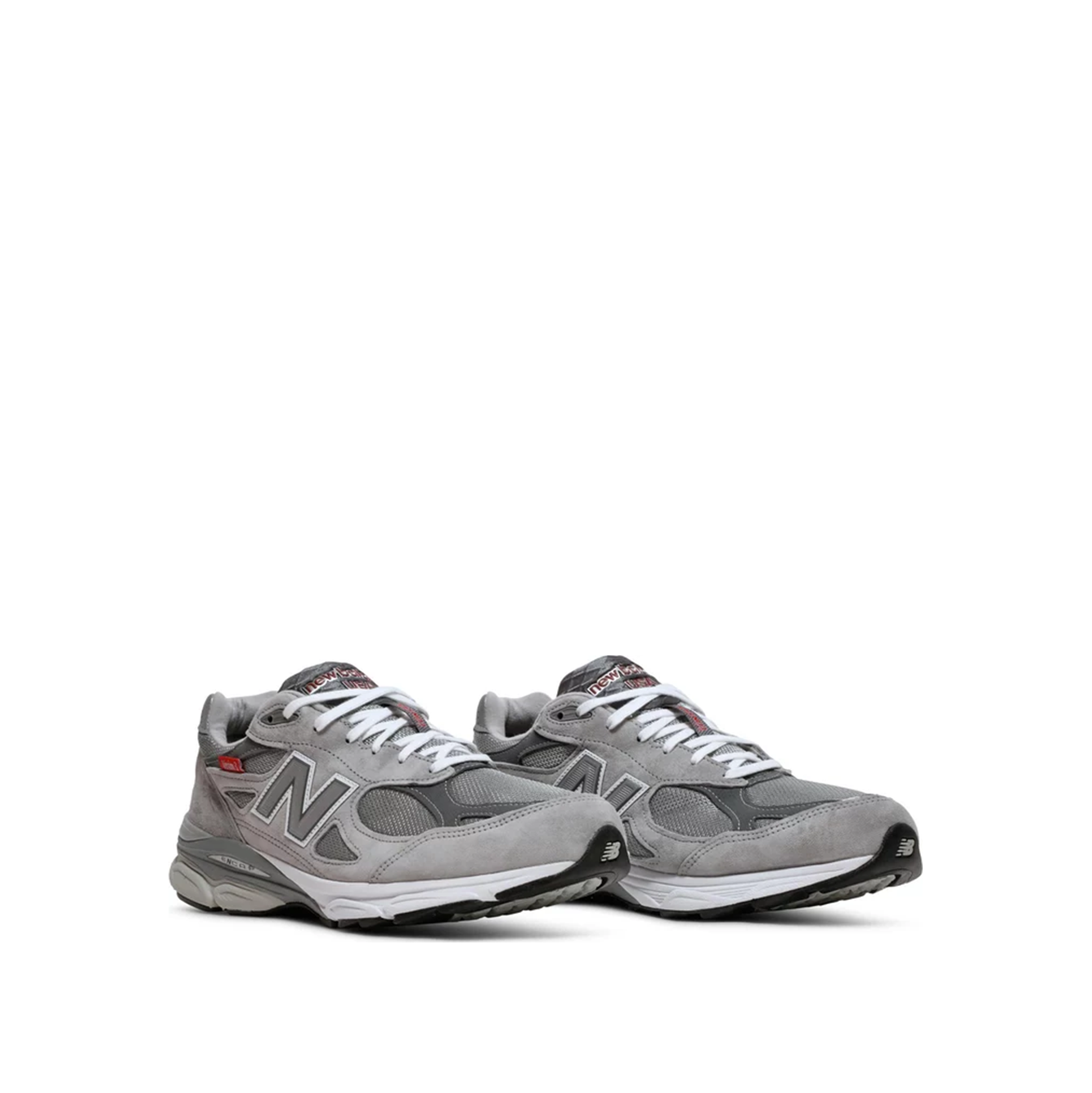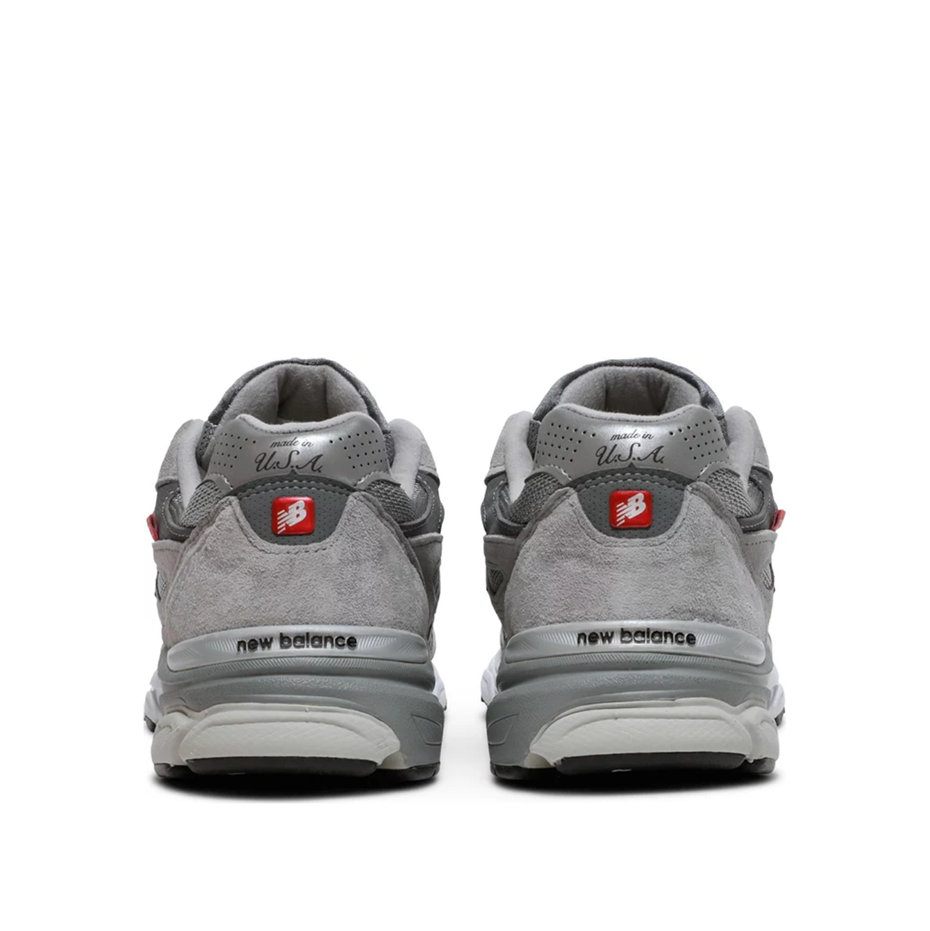 Відзначаючи 990-ту річницю, New Balance пропонує спеціальну версію V3 ітерації культового силуету в класичному сірому кольорі з червоними вставками на язичку, п'ятці та бічній вкладці. Гнучкий верх із замші підкріплений сітчастими та світловідбиваючими вставками, з додатковими світловідбиваючими деталями на значку "N" та п'ятці. Багатошарова проміжна підошва ENCAP підтримується гумовою підошвою N-durance та забезпечує комфорт і стійкість при кожному кроці. Світловідбиваючий напис на язичку "Made in USA" доповнює взуття.